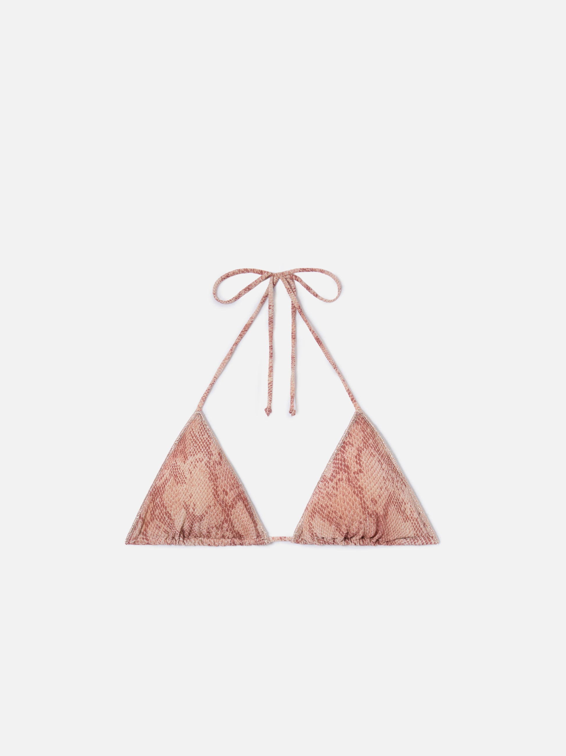 Top bikini Leah Overlock triangolo in lurex con stampa pitonata