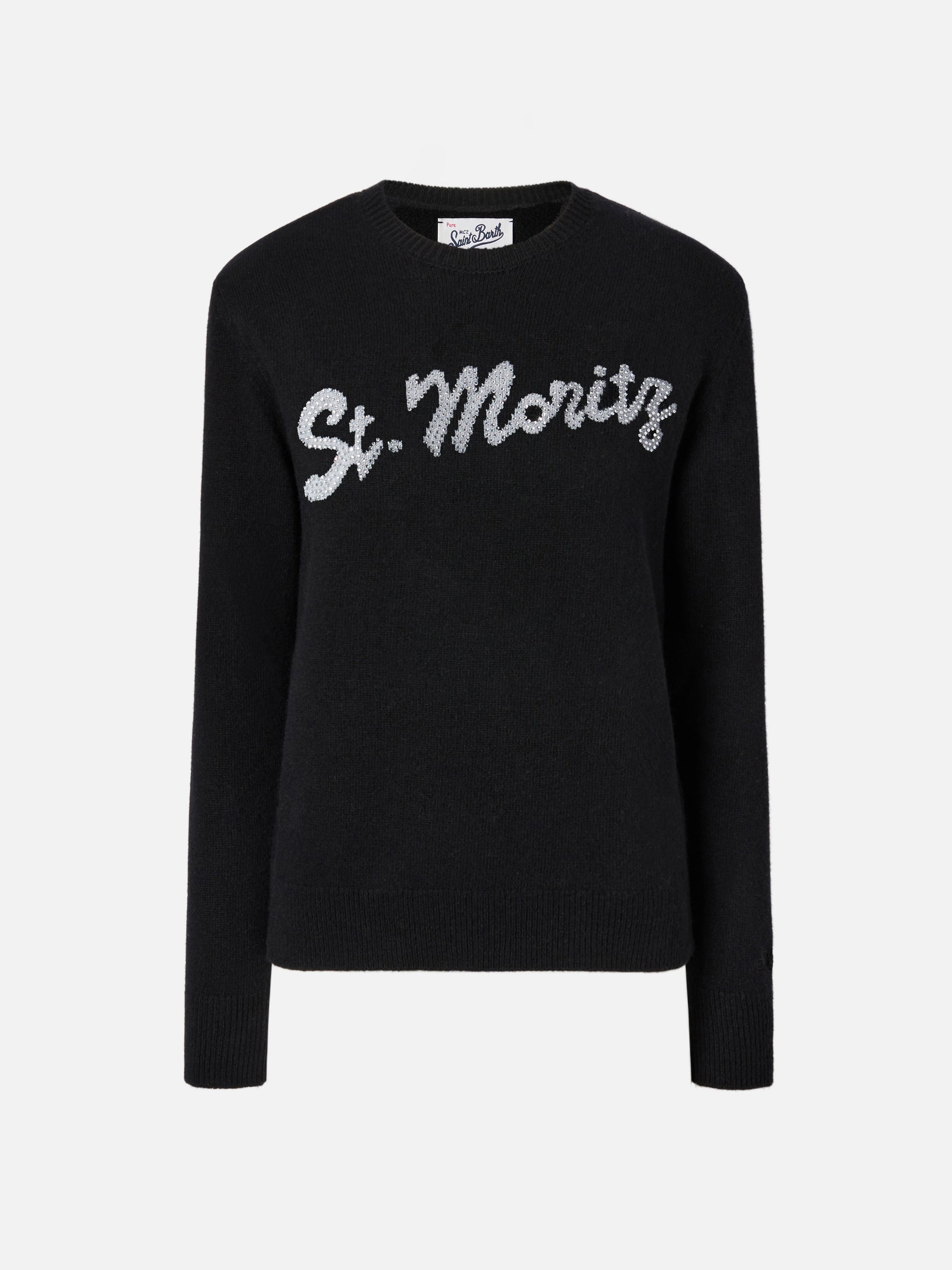 Maglione Louise in cashmere nero con applicazione St. Moritz in strass