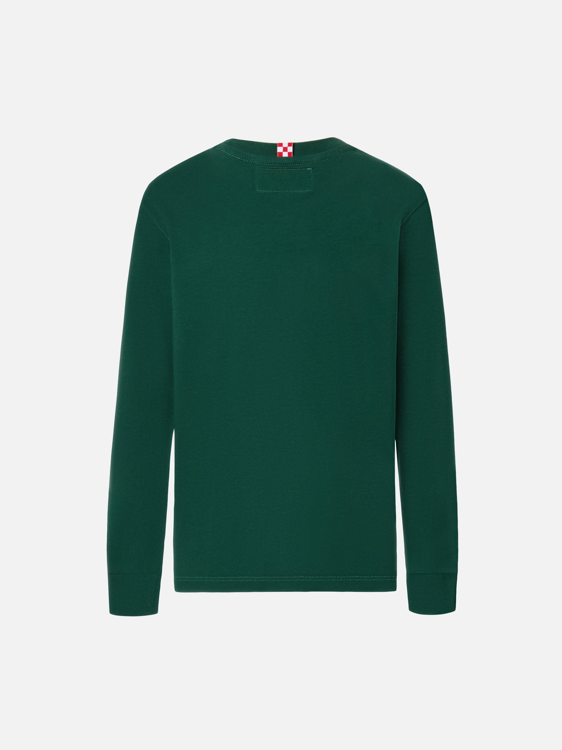 T-shirt Luton in cotone verde a maniche lunghe con ricamo Me ne vado dai nonni