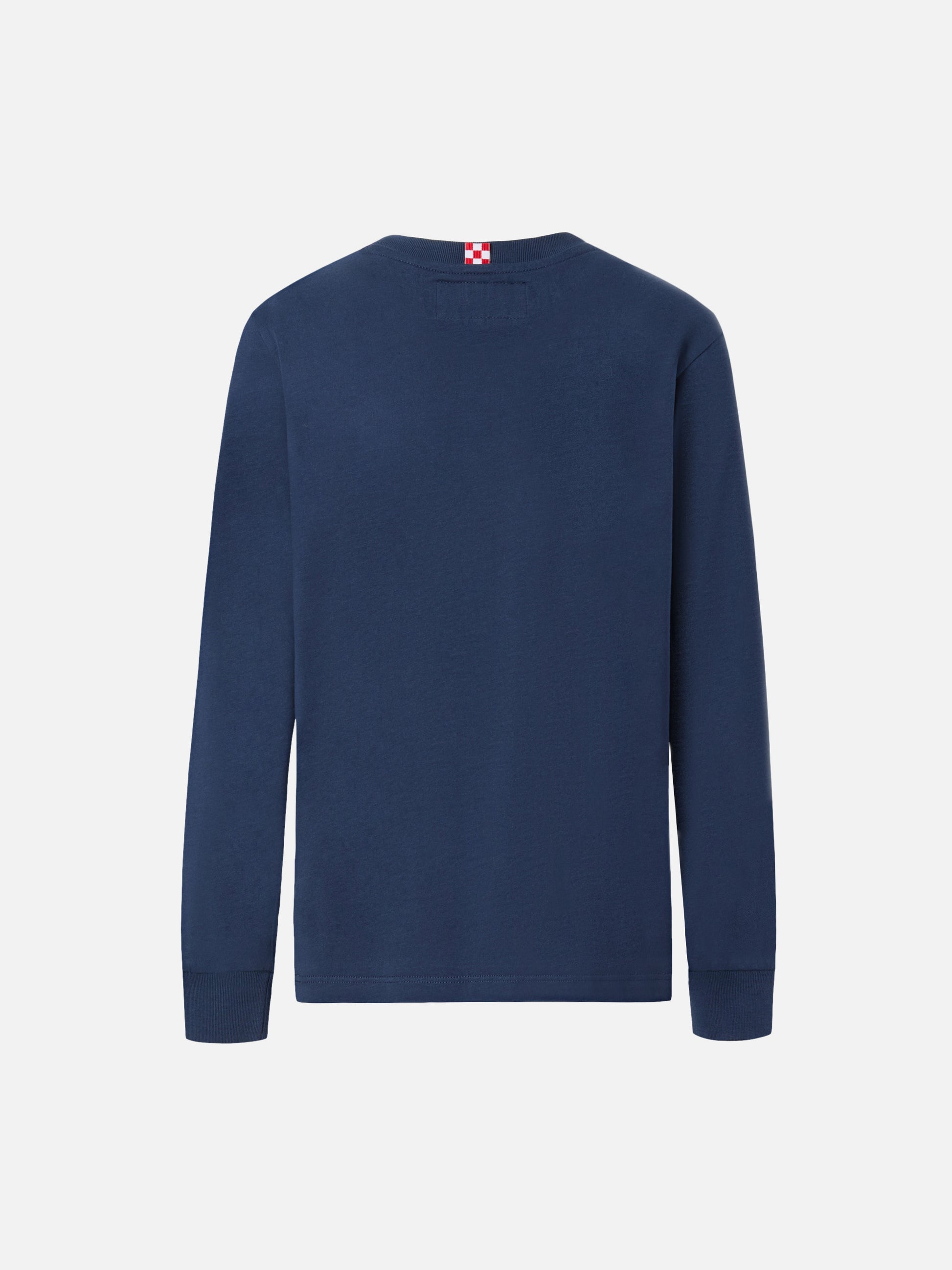 T-shirt Luton in cotone invernale blu a maniche lunghe con ricamo St. Barth ski club e stampa Snoopy | SNOOPY SPECIAL EDITION