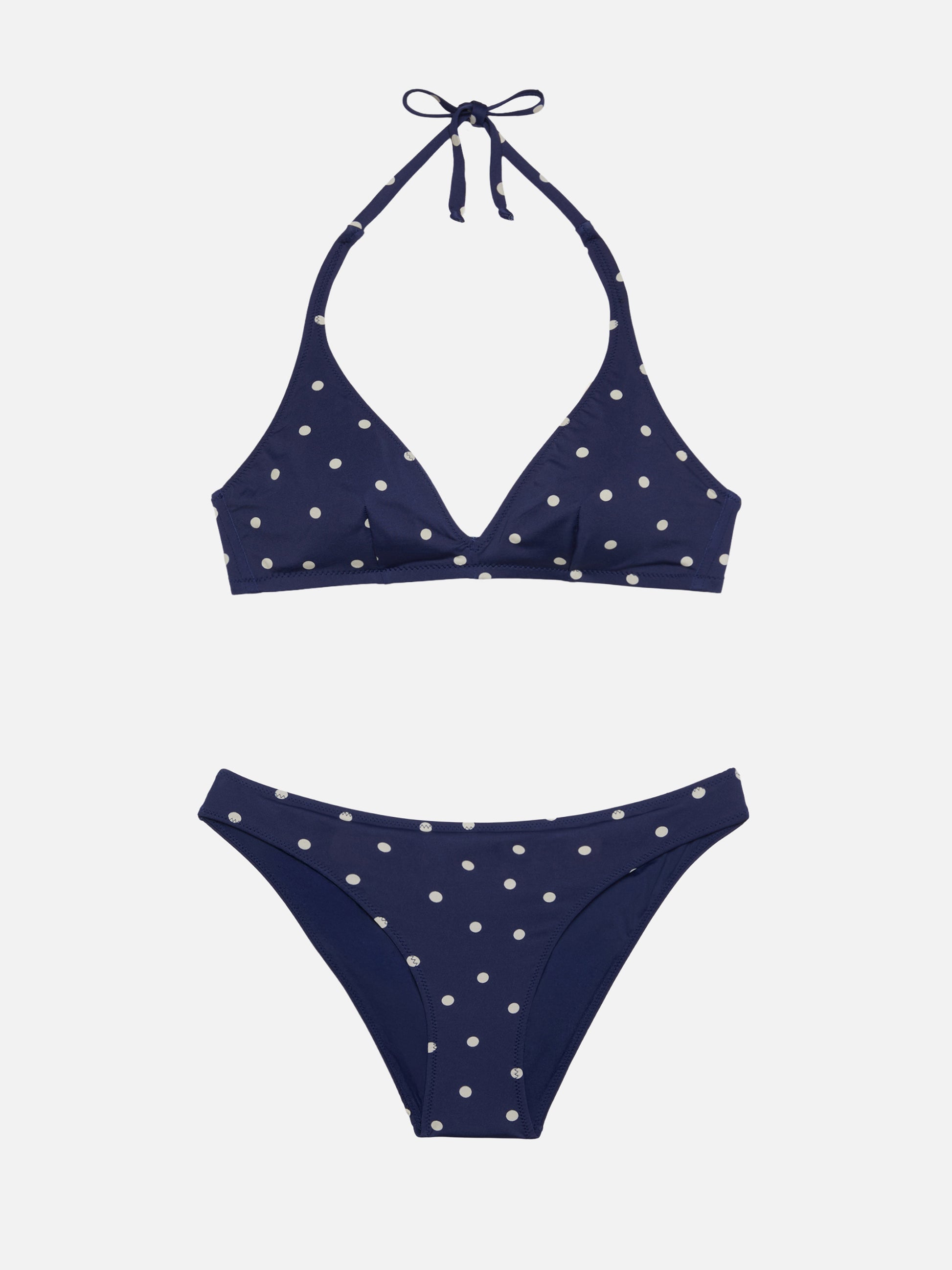 Bikini a triangolo fisso Gaia Maia con slip a vita alta e stampa a pois
