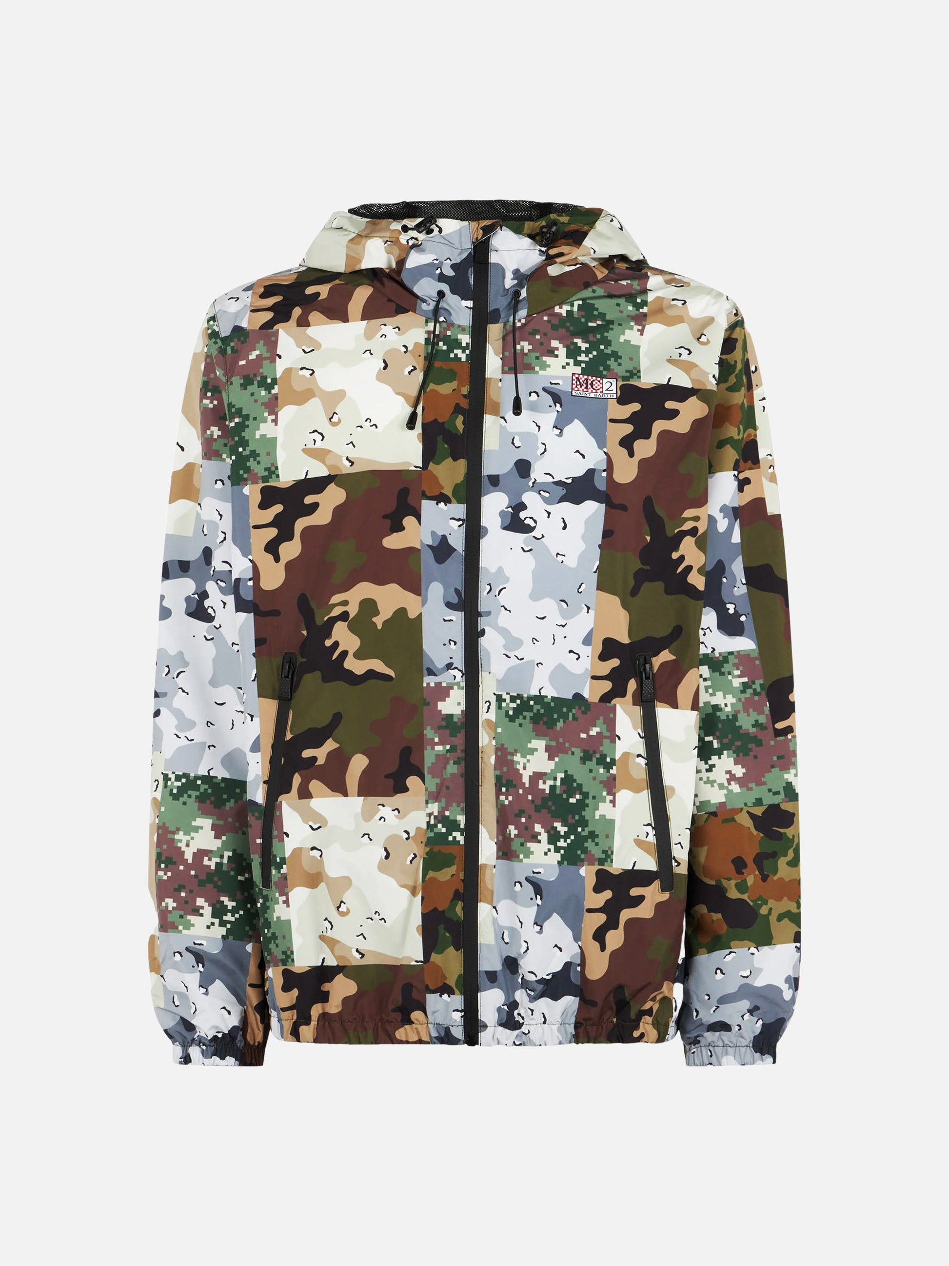 Giacca a vento leggera da uomo con cappuccio e stampa mimetica