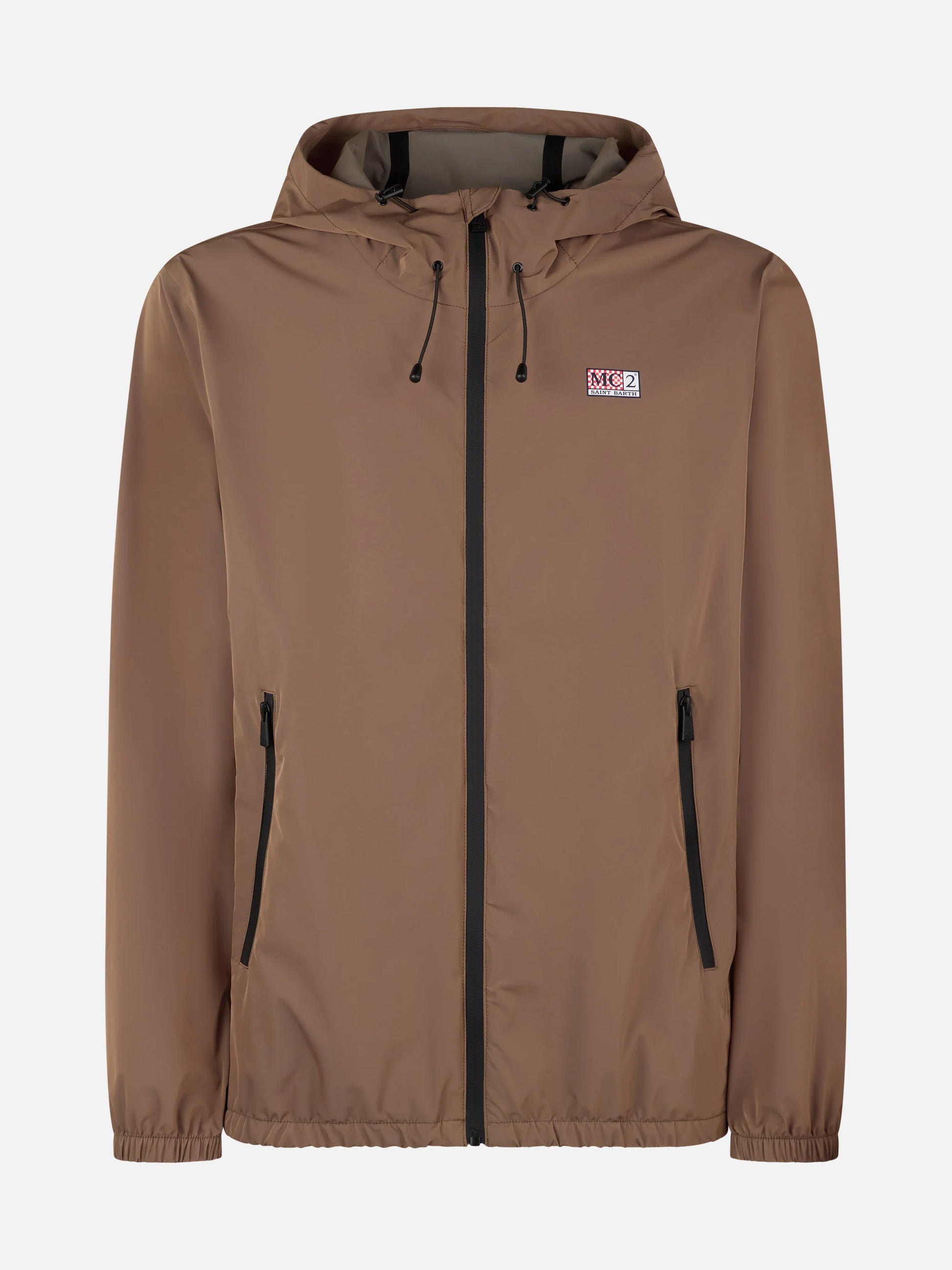 Giacca a vento da uomo Solaro in tessuto leggero verde kaki con cappuccio