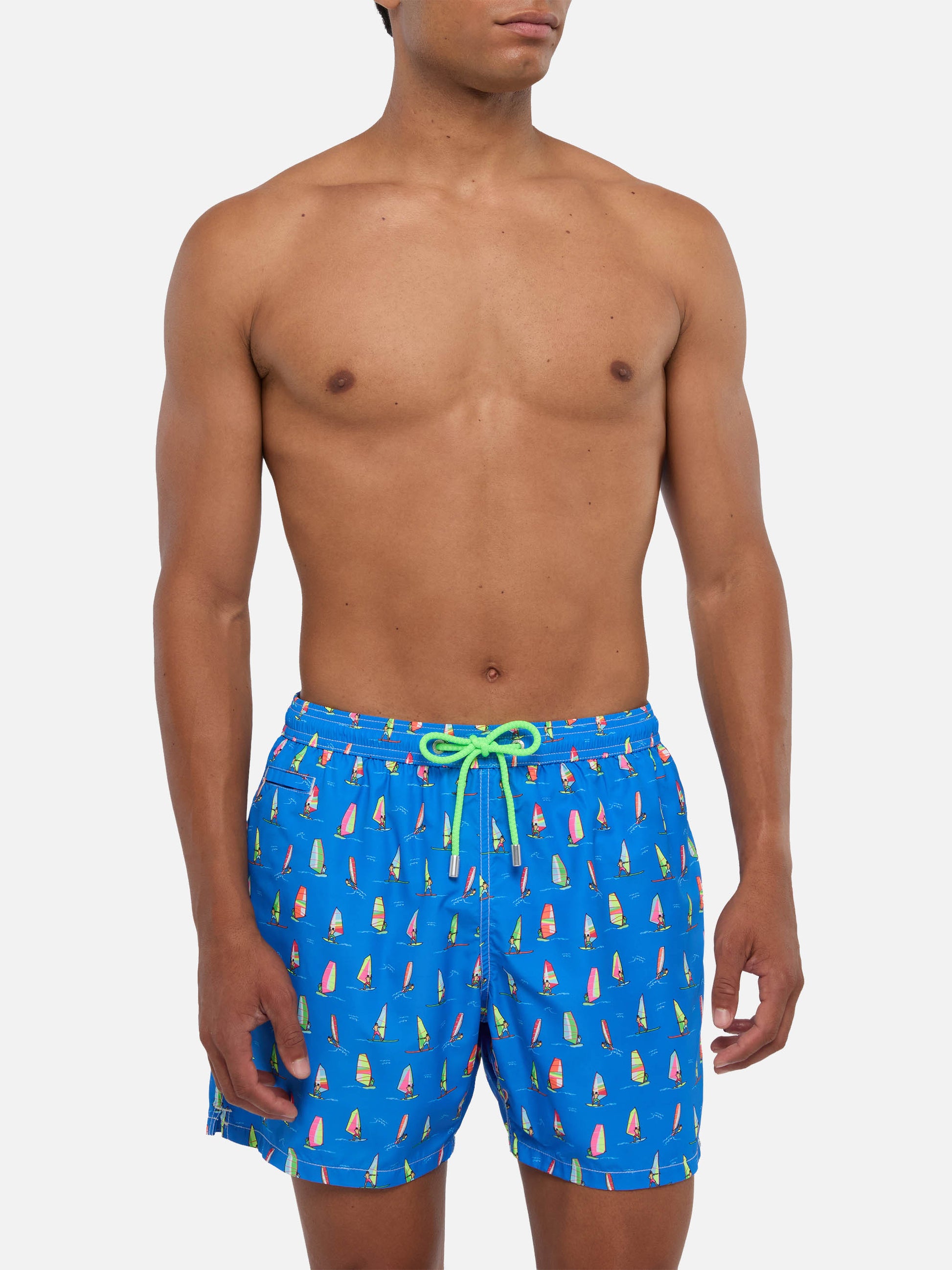 Costume da bagno da uomo in tessuto leggero con stampa windsurf