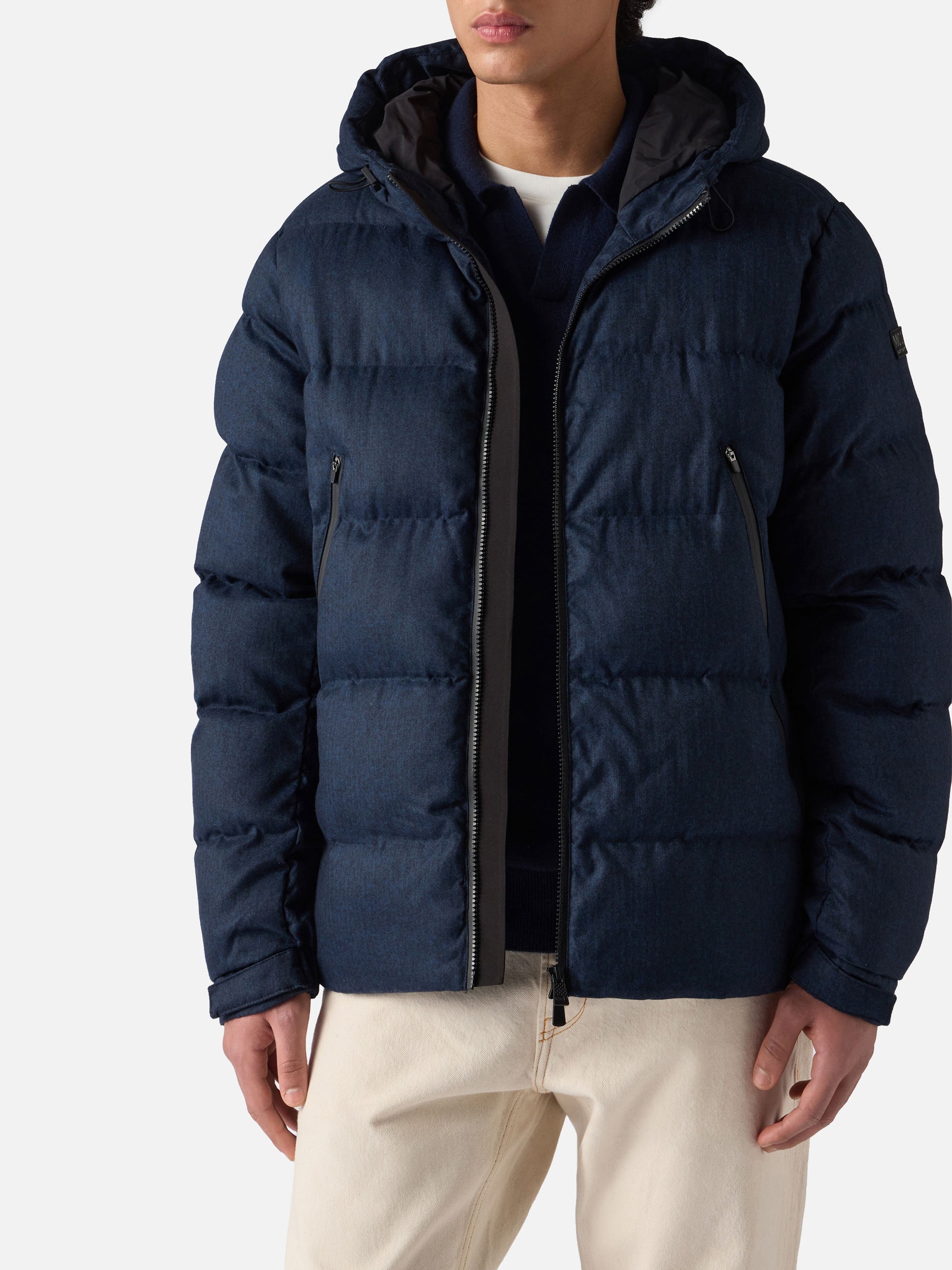 Piumino con cappuccio in flanella blu navy da uomo Maier