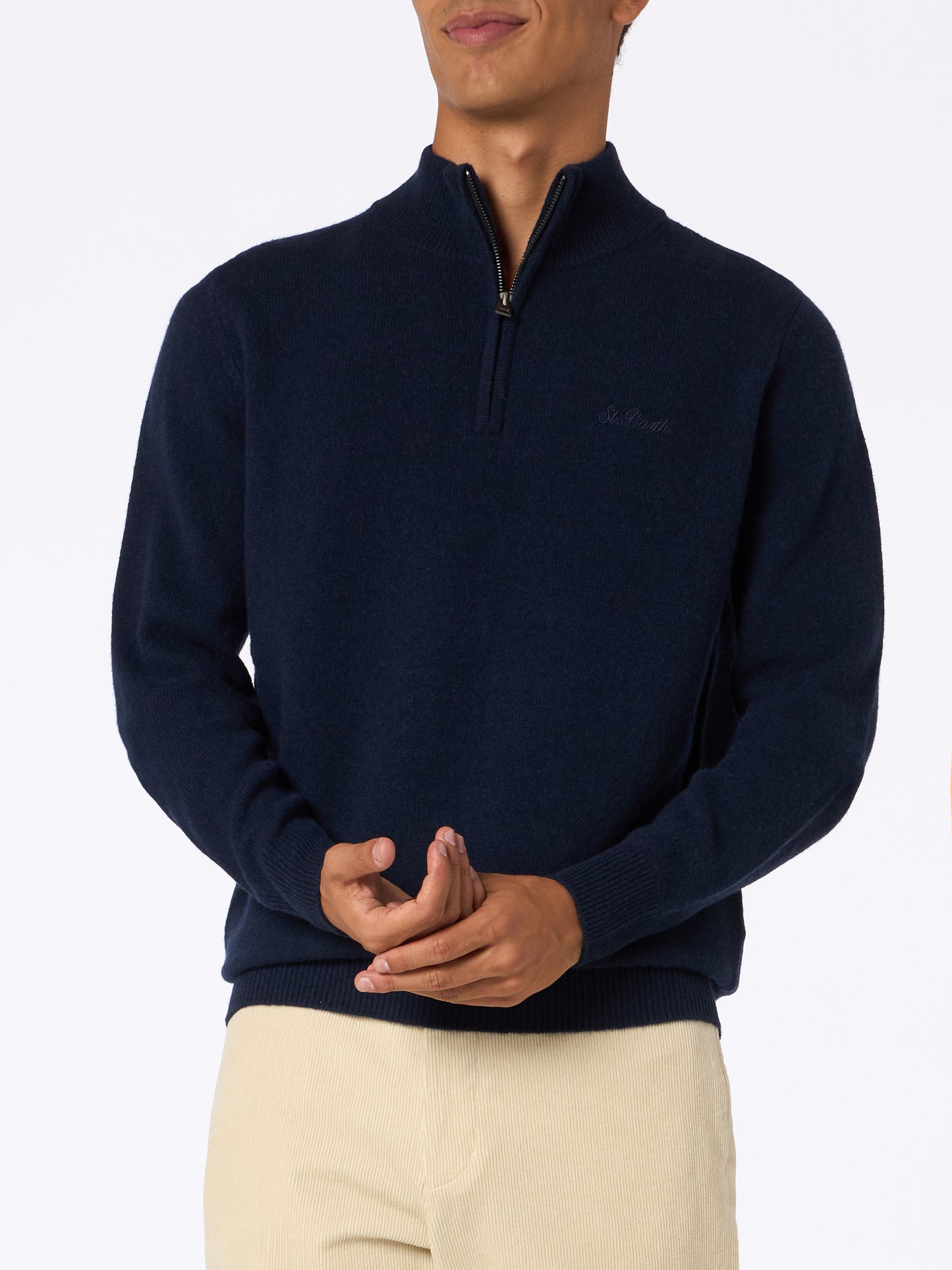 Maglione blu in Lambswool con cerniera a un quarto da uomo Jermyn