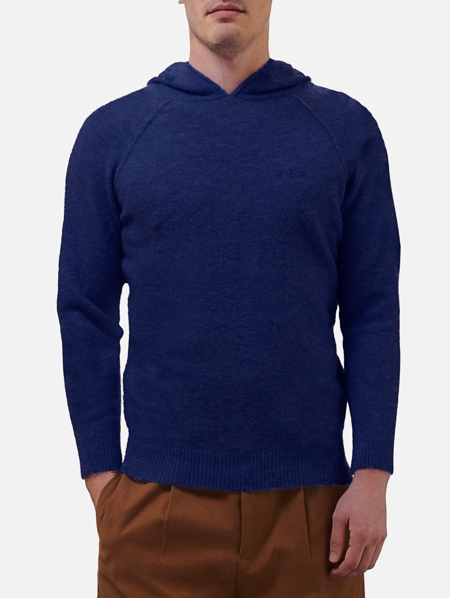 Maglione con cappuccio in alpaca stretch blu navy Piccadilly
