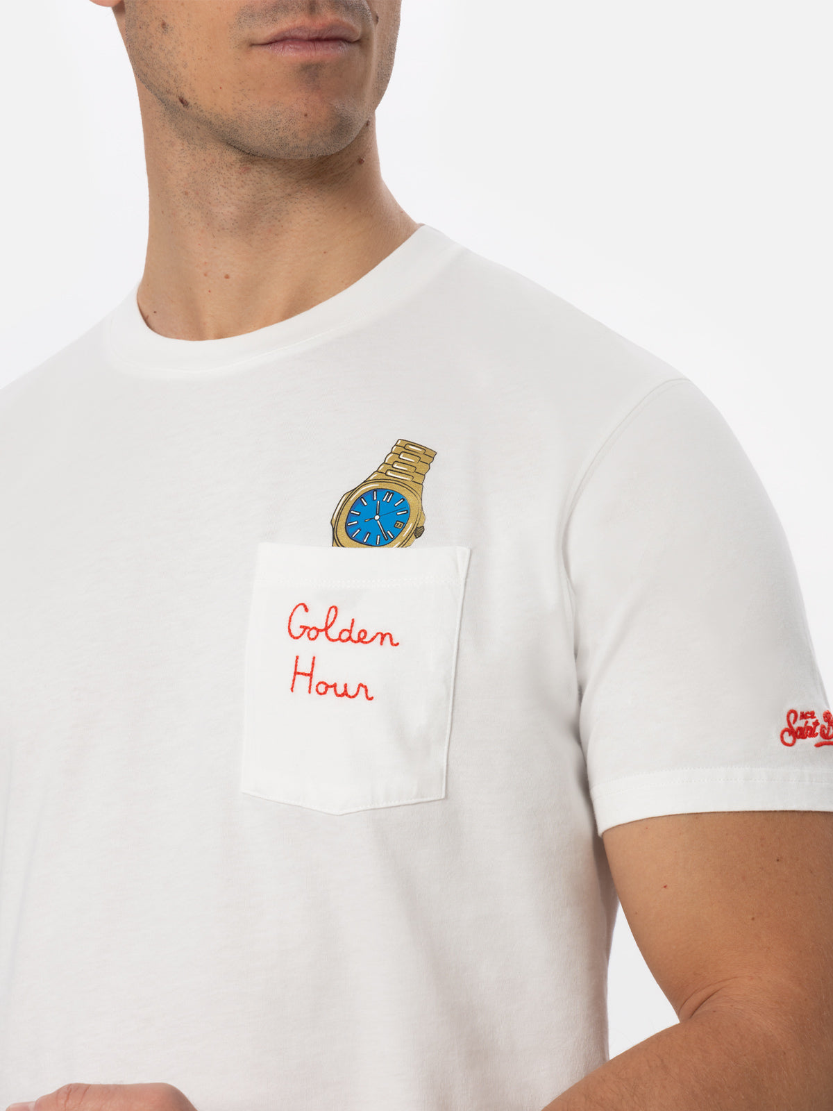 T-shirt da uomo in cotone bianco Connor con ricamo Golden hour