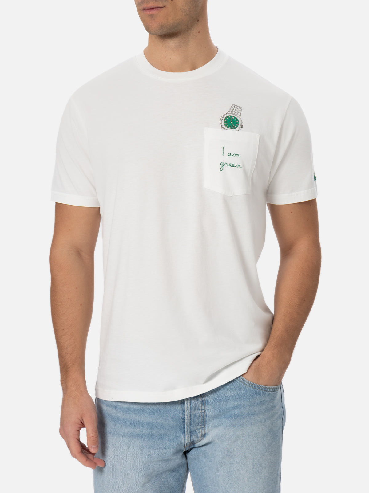 T-shirt bianca da uomo in cotone Connor con ricamo I am green