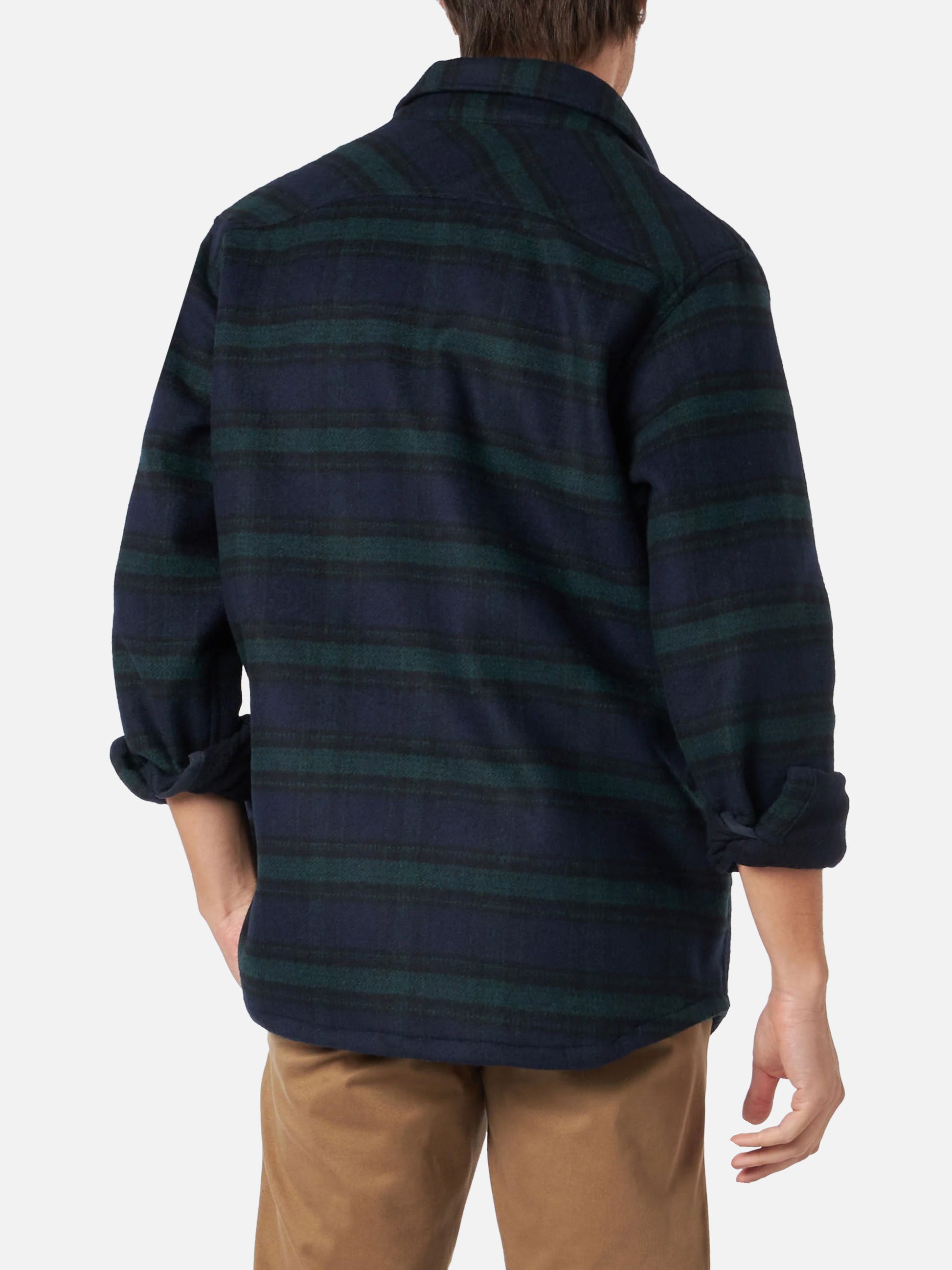 Camicia da uomo in tartan di lana con tasche e toppe