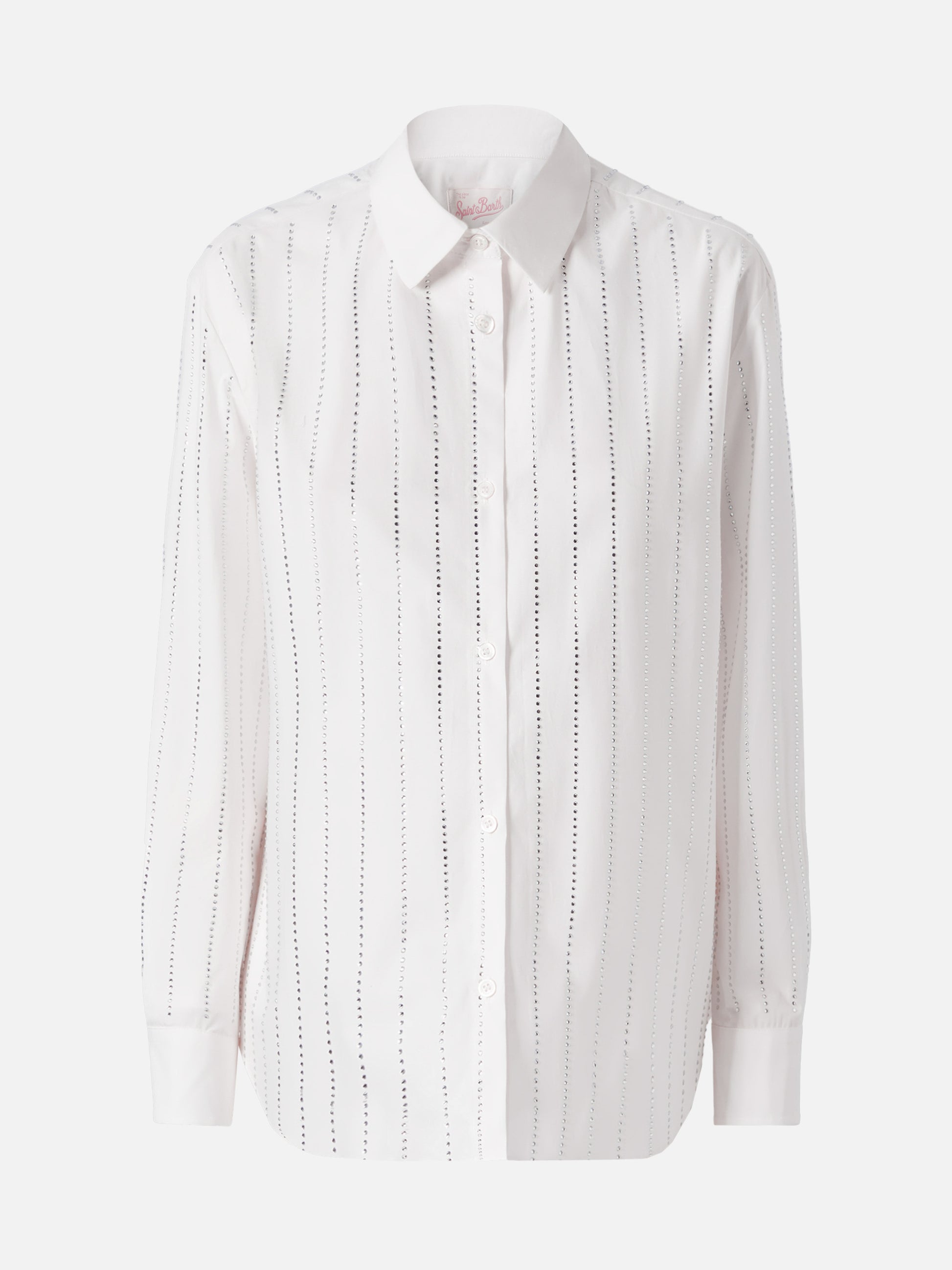 Camicia classica in popeline di cotone Meredith con decorazione rigata in strass