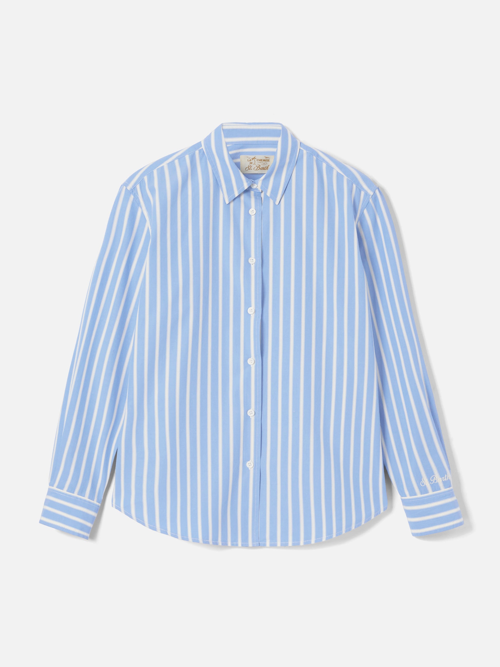 Camicia Meredith in cotone a righe azzurre con ricamo Saint Barth