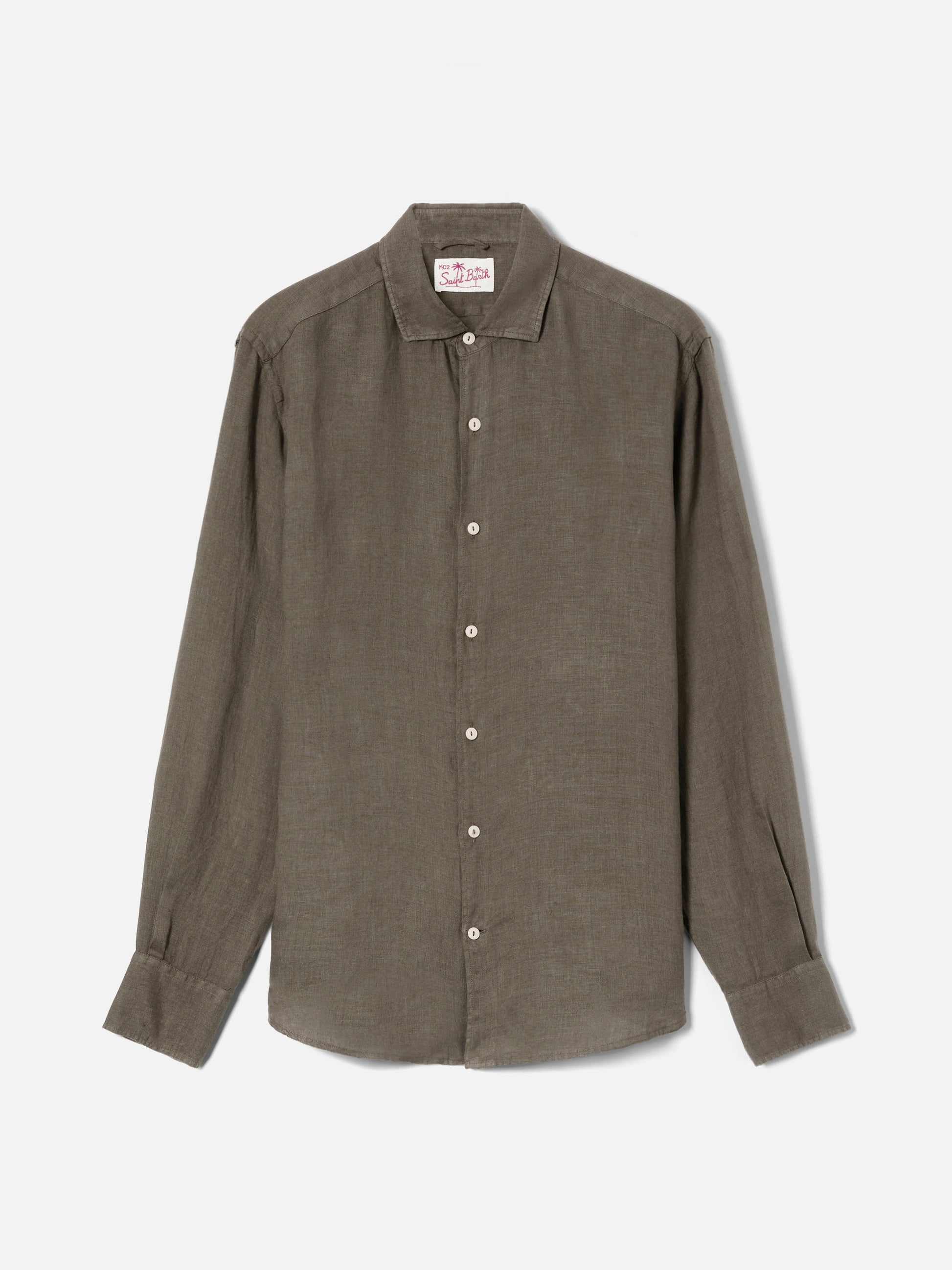 Camicia Pamplona in lino verde militare tinta unita