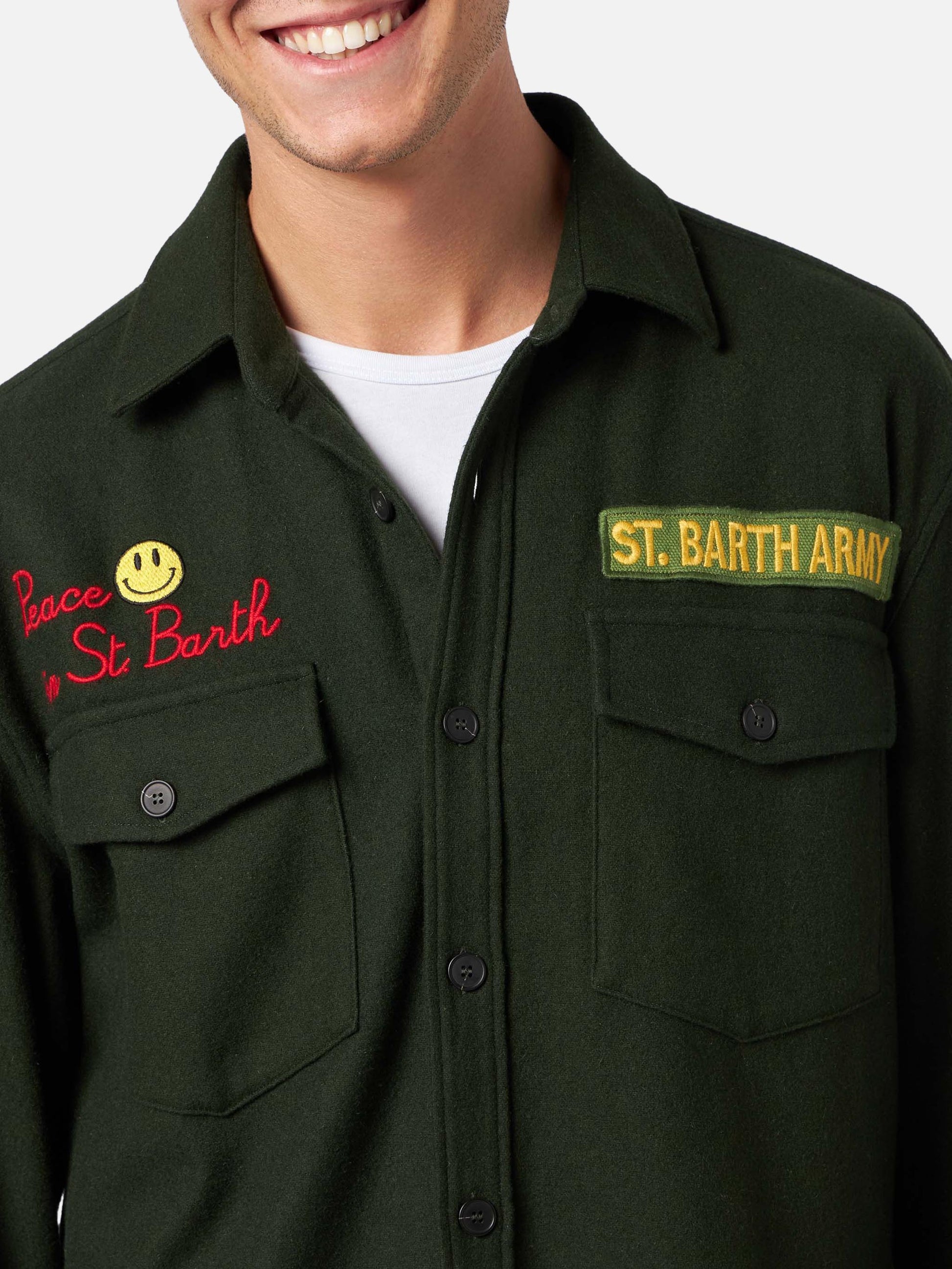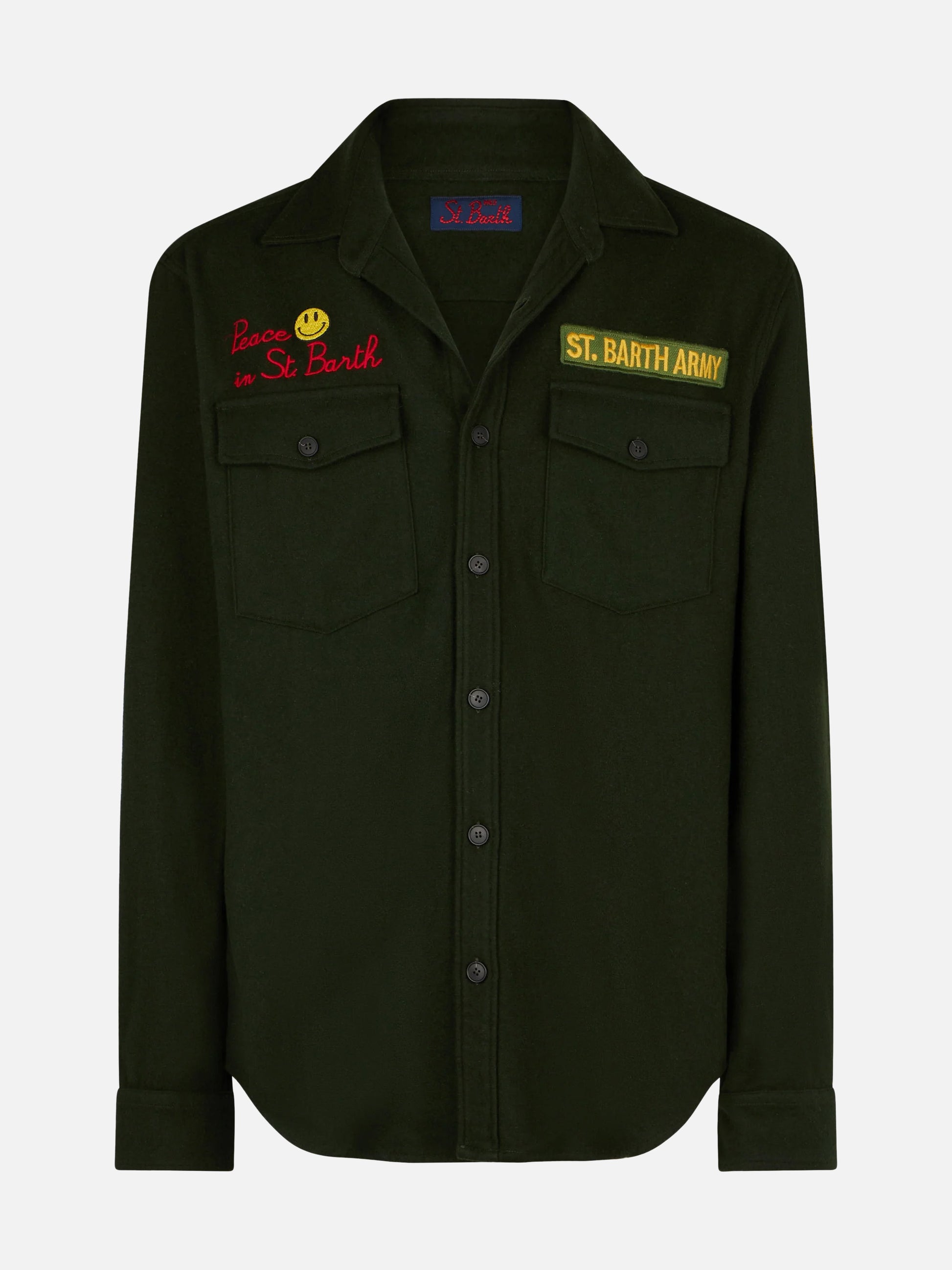 Sovracamicia in fustagno con ricamo Peace in St. Barth