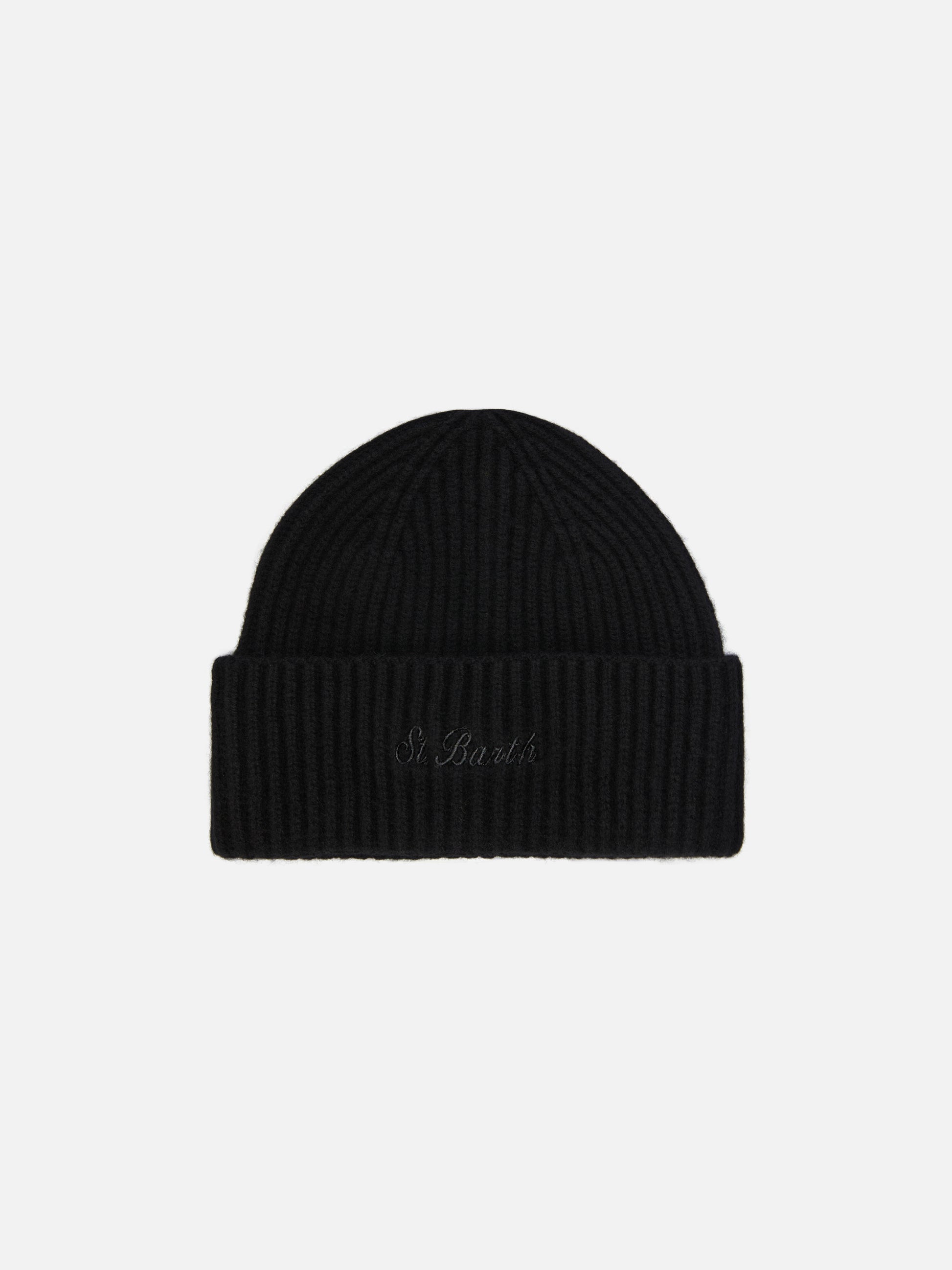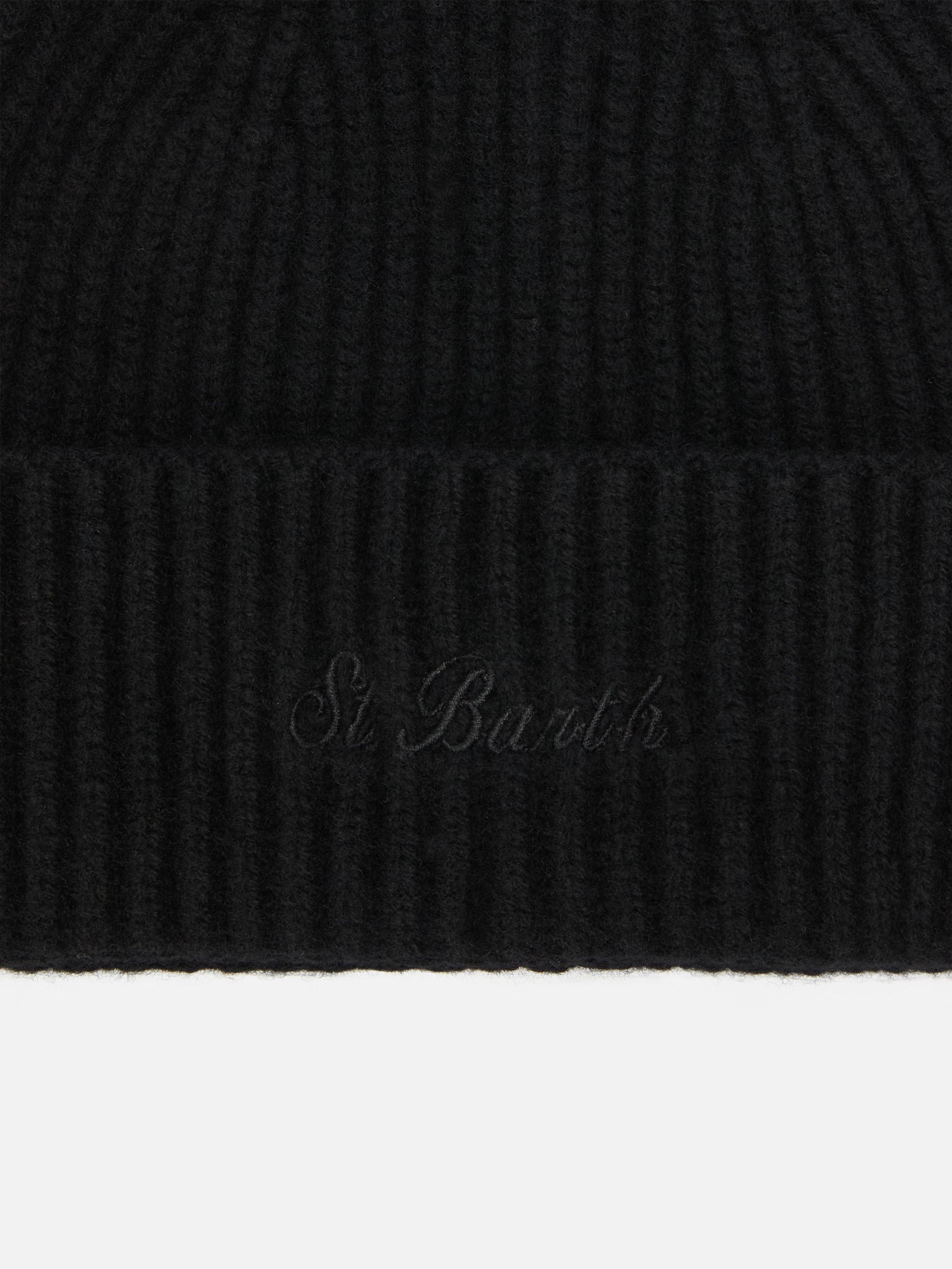 Berretto Moss in maglia nera a coste con ricamo St. Barth