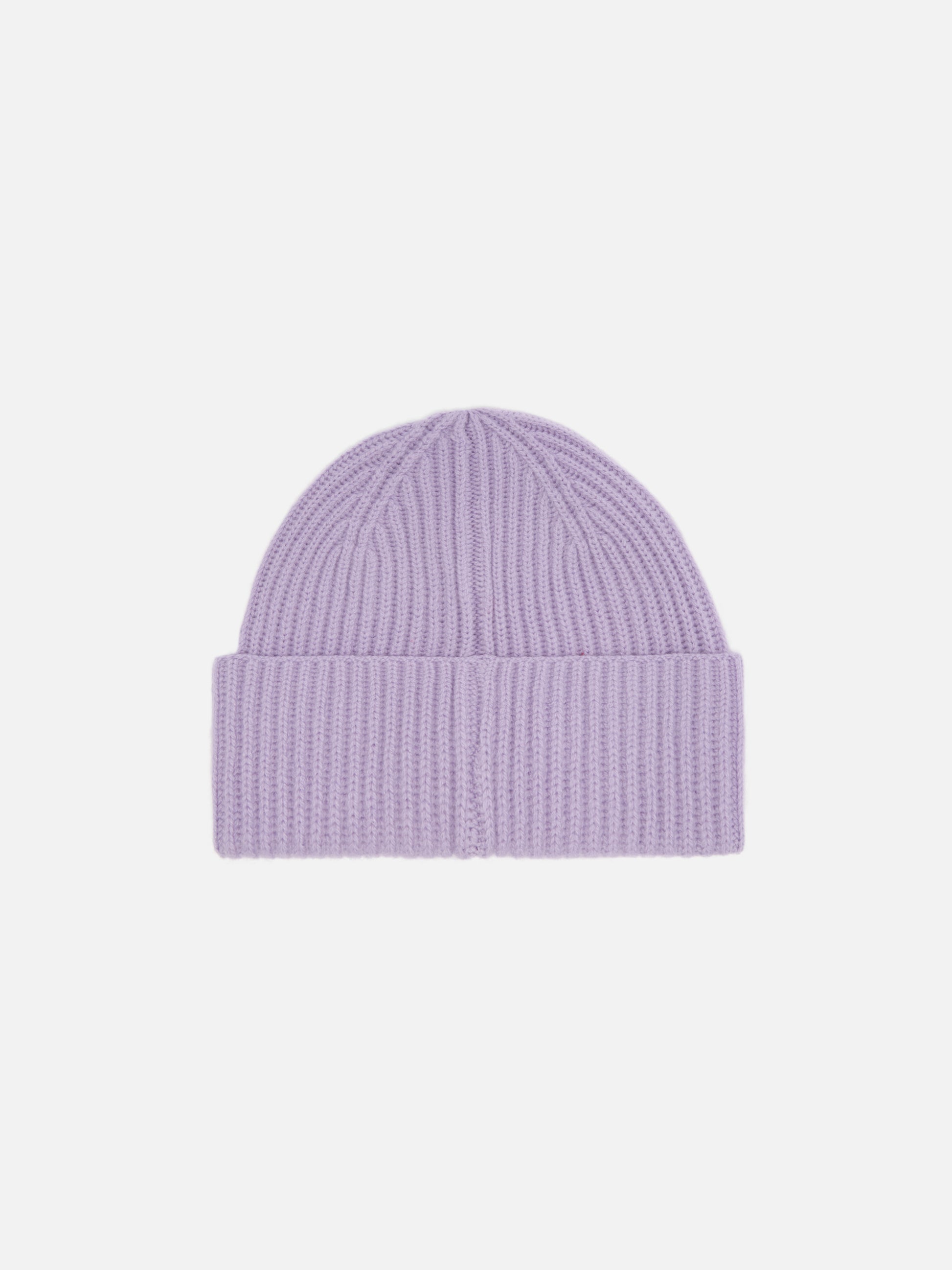 Berretto Moss in maglia lilla a coste con ricamo St. Barth
