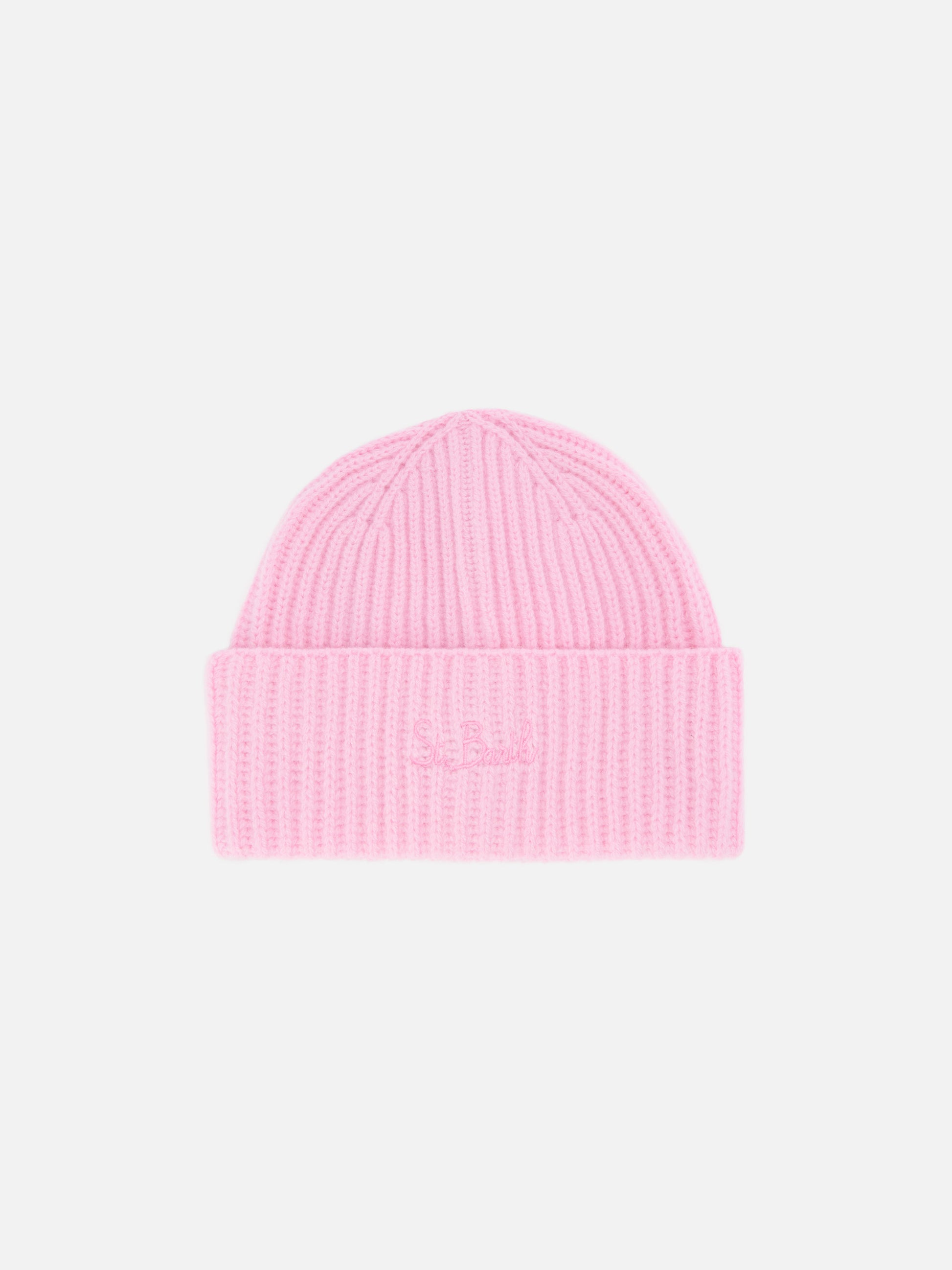 Berretto Moss Jr in 100% LANA rosa con ricamo St. Barth