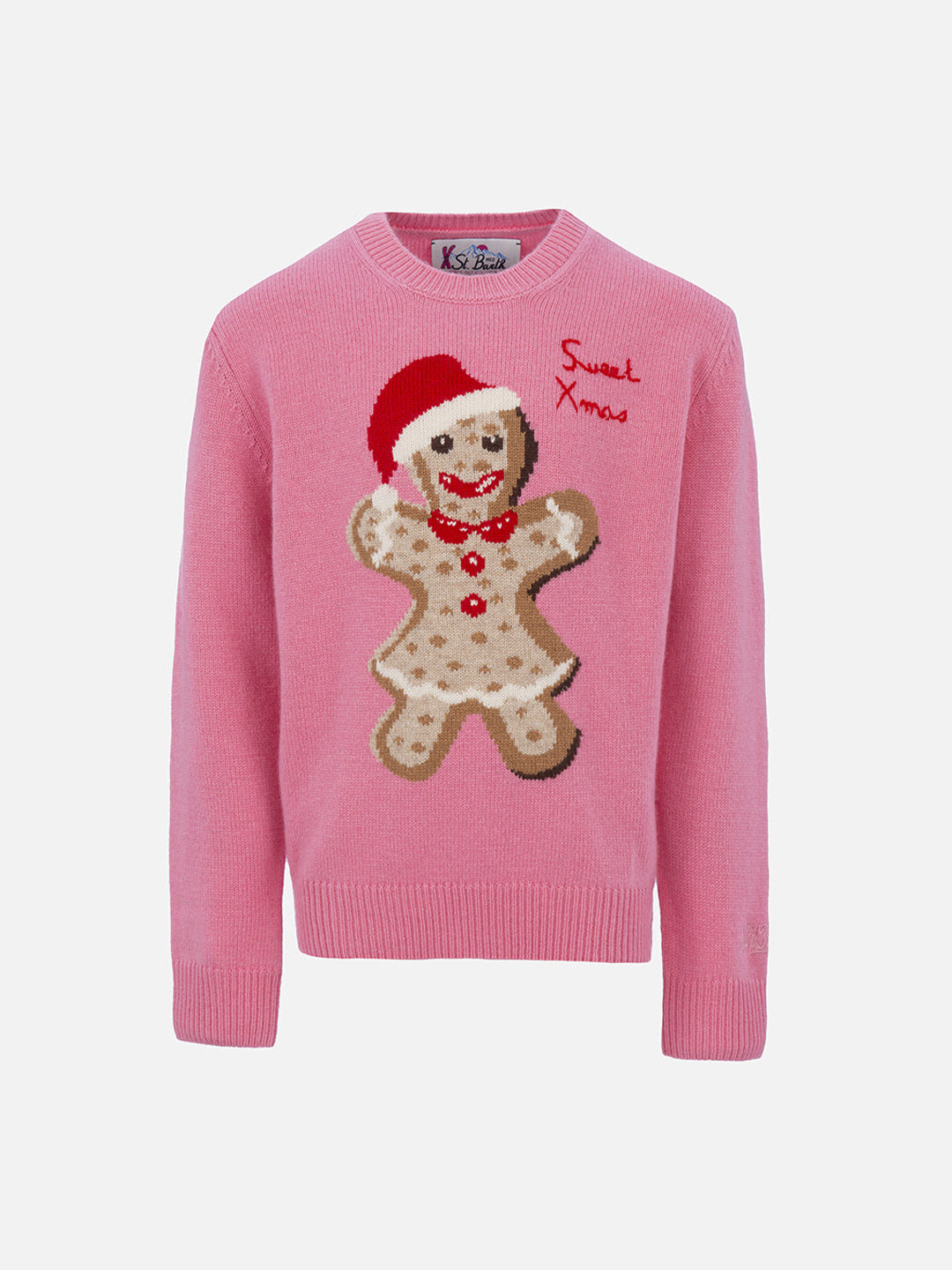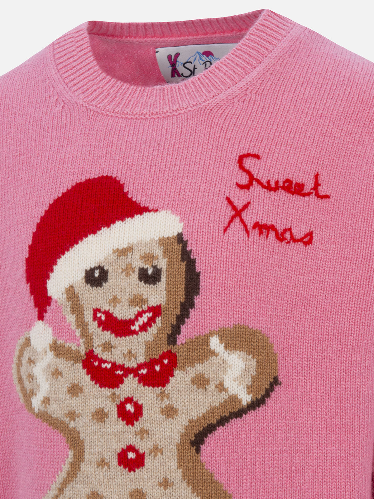 Maglione rosa girocollo da bambina con stampa di pan di zenzero
