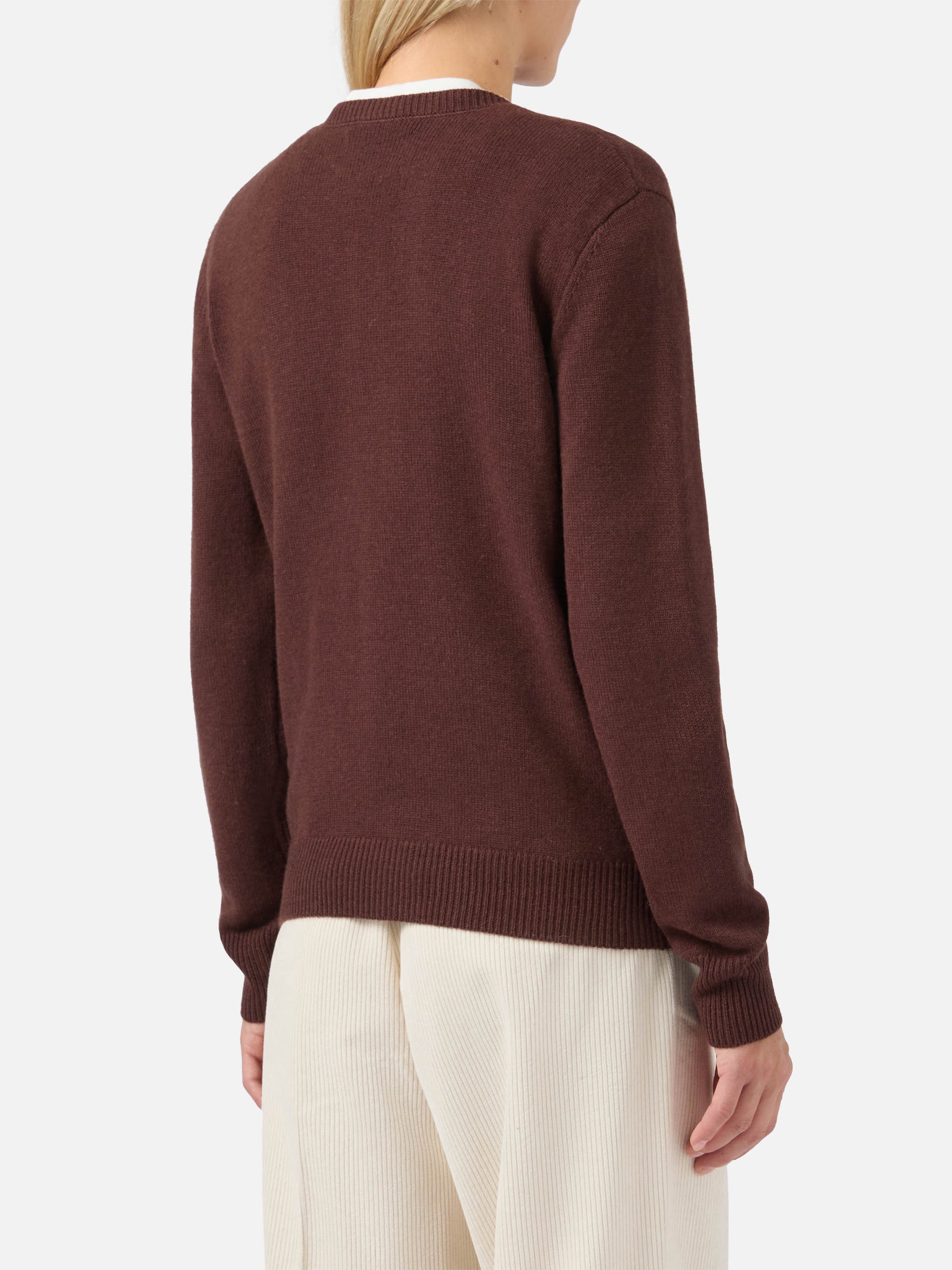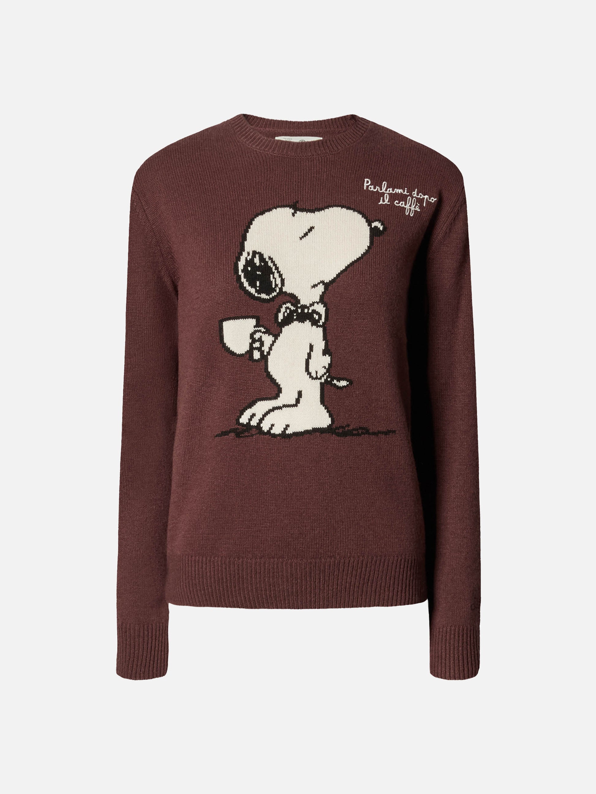 Maglione New Queen in misto cashmere marrone con jacquard Snoopy e ricamo | PEANUTS SPECIAL EDITION