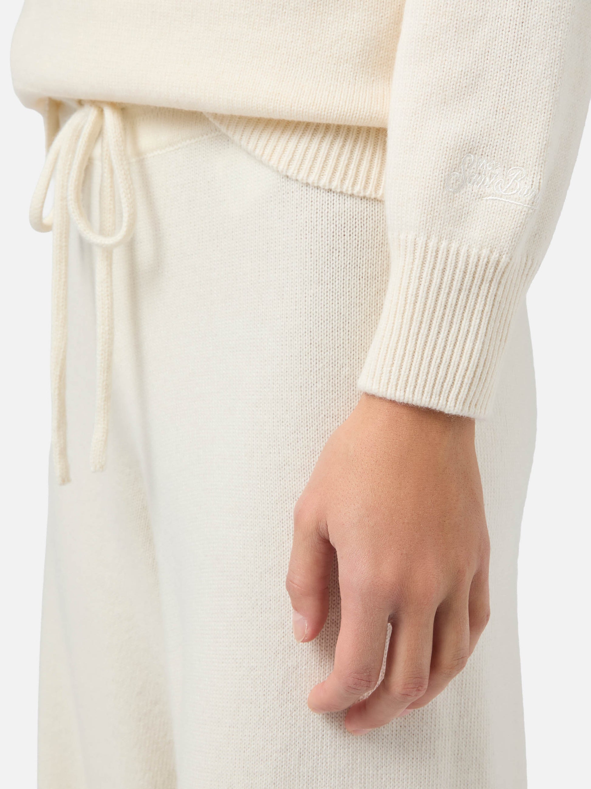 Maglione New Queen in misto cashmere bianco con ricamo Sono molto tonica