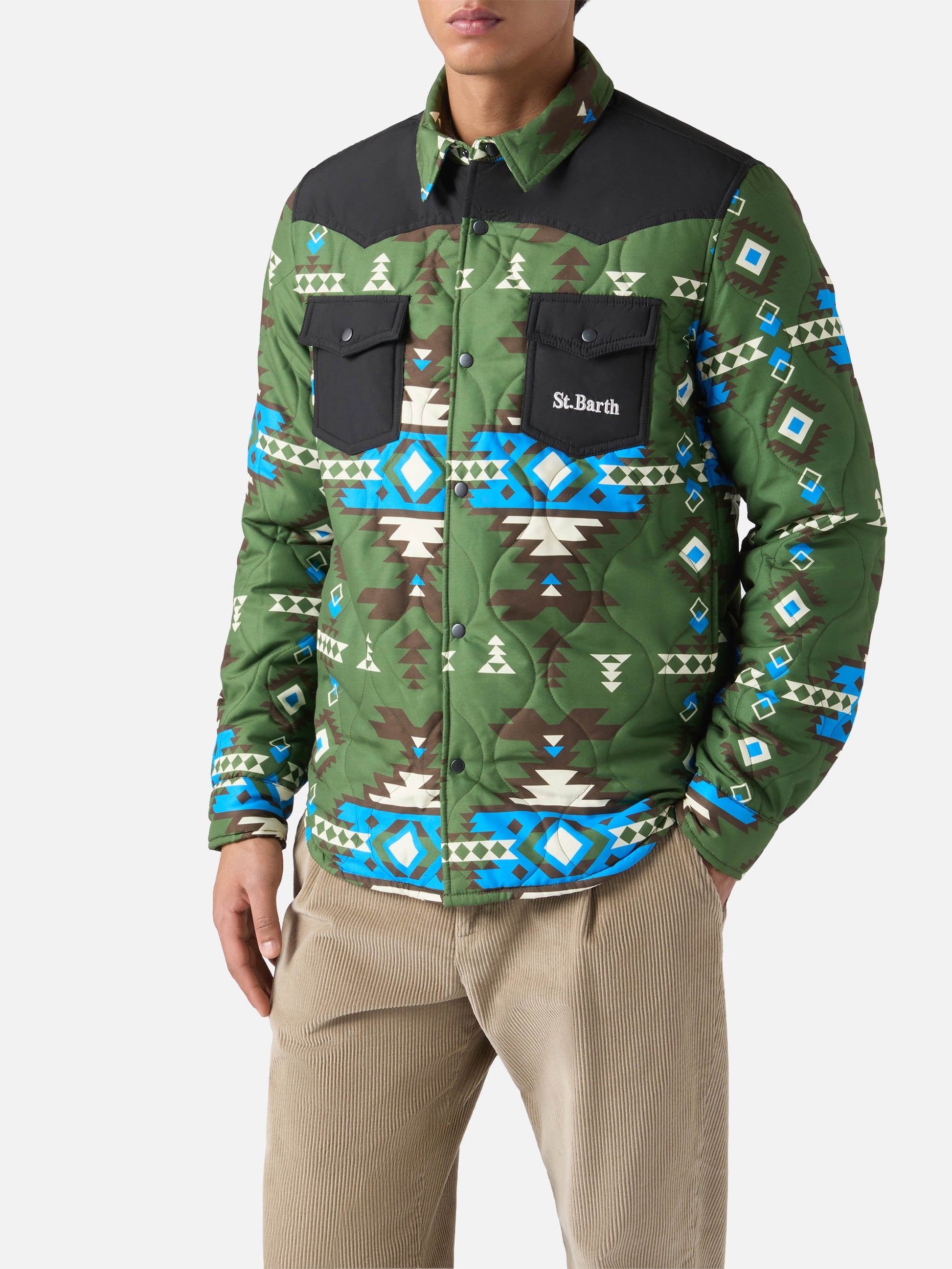 Sovracamicia imbottitaChalet con stampa etnica e tasche a toppa