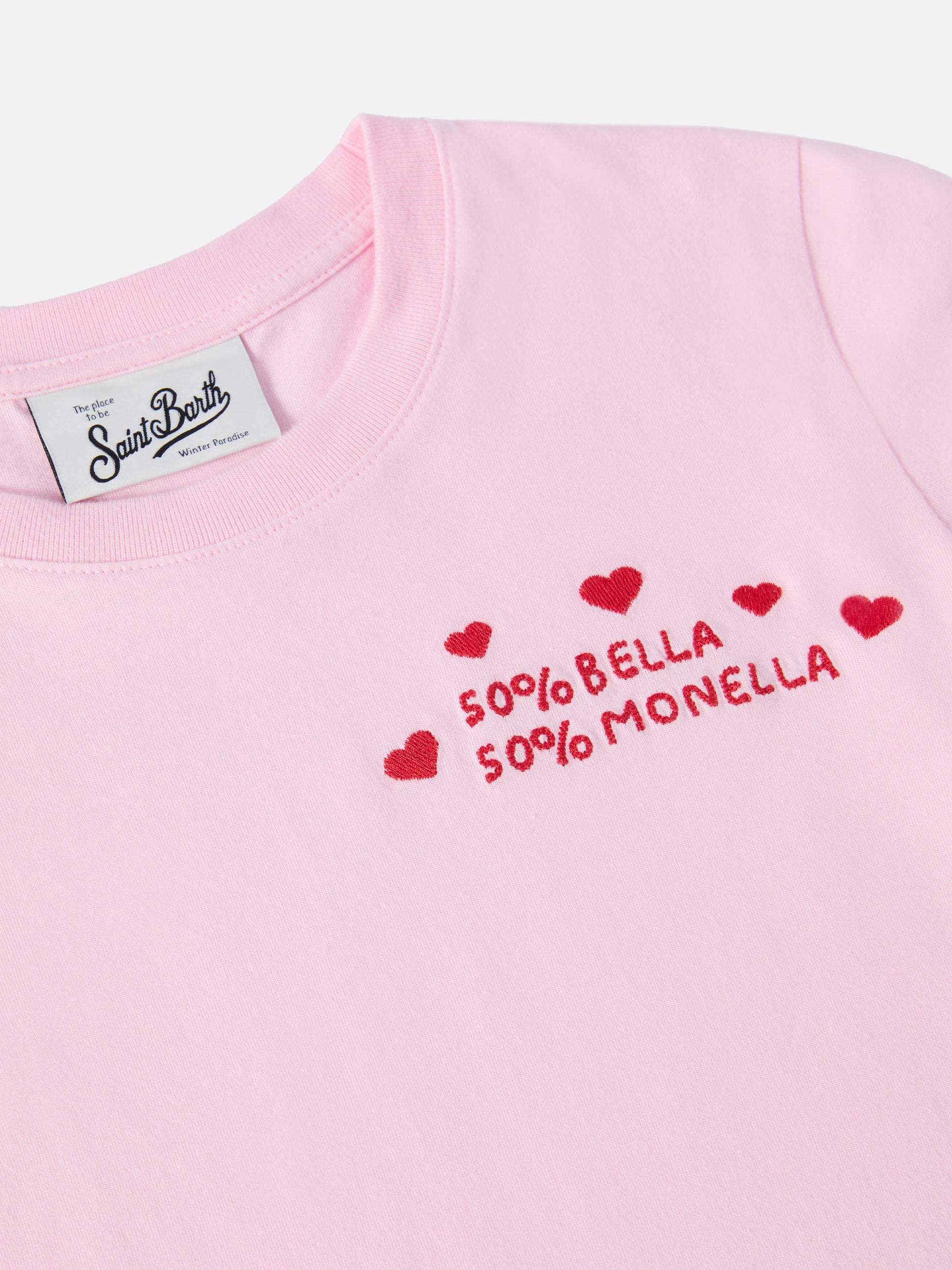 T-shirt Penny in cotone rosa a maniche lunghe con ricamo Bella e Monella