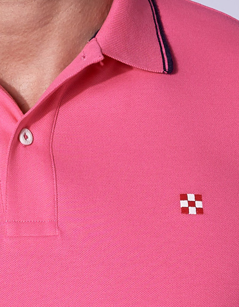 Polo piquet rosa fluo con logo St. Barth check