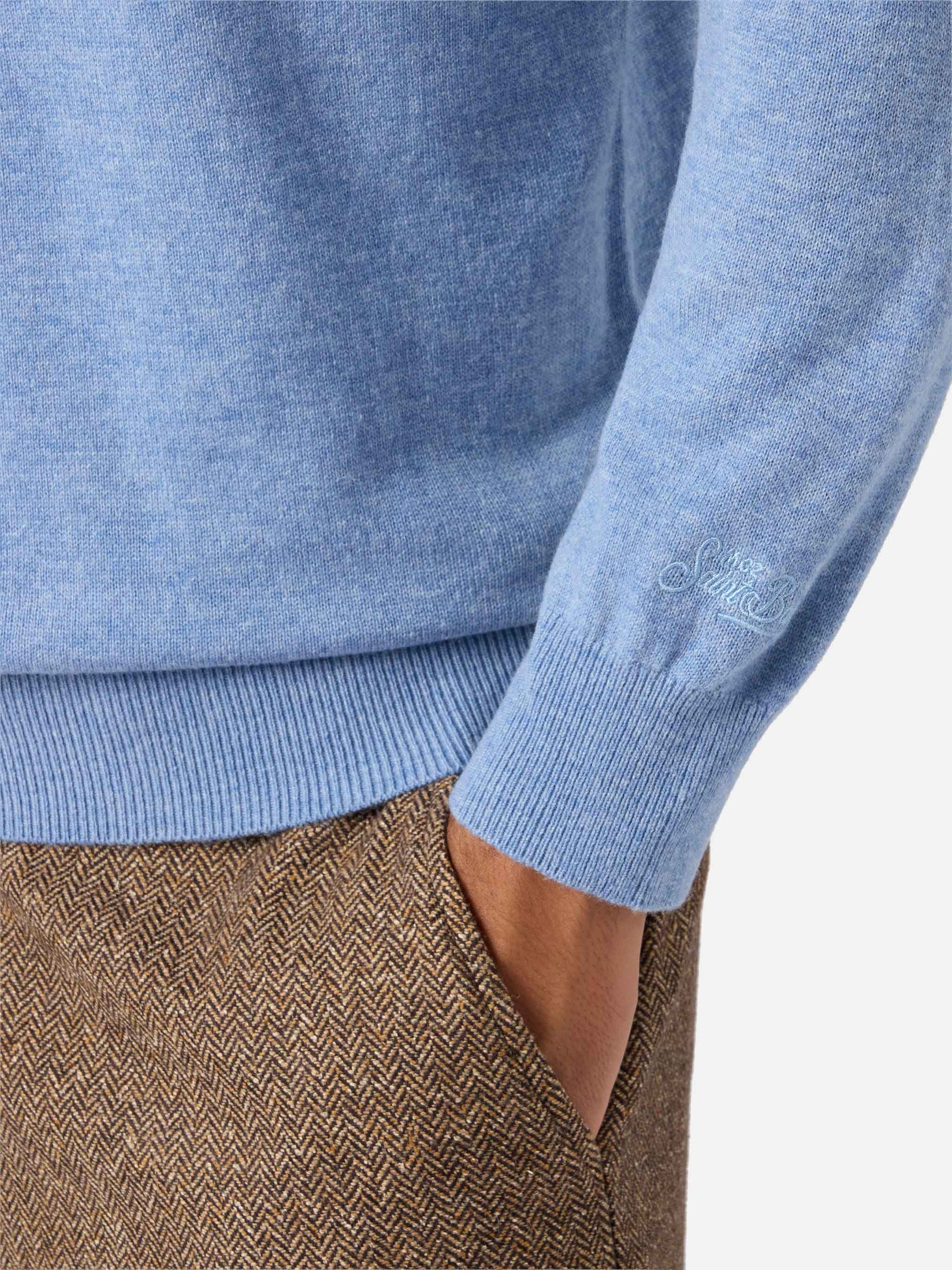 Maglione Regent in lana merino e cashmere azzurro polvere