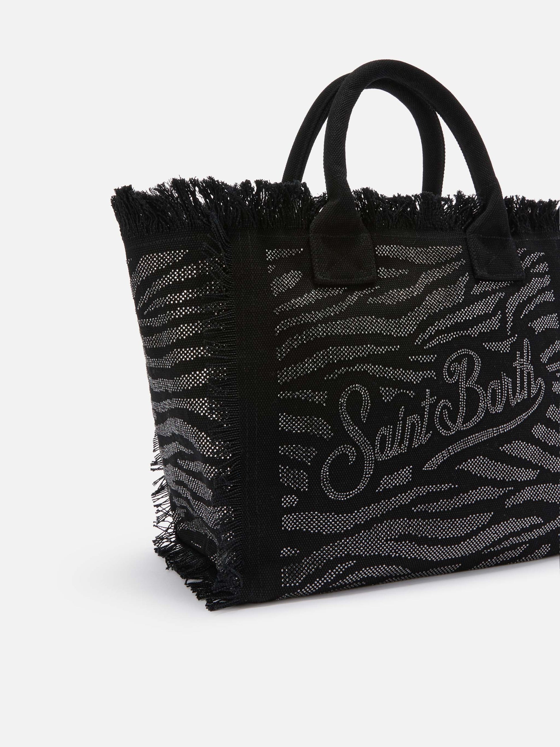 Borsa Vanity regular in canvas animalier con strass