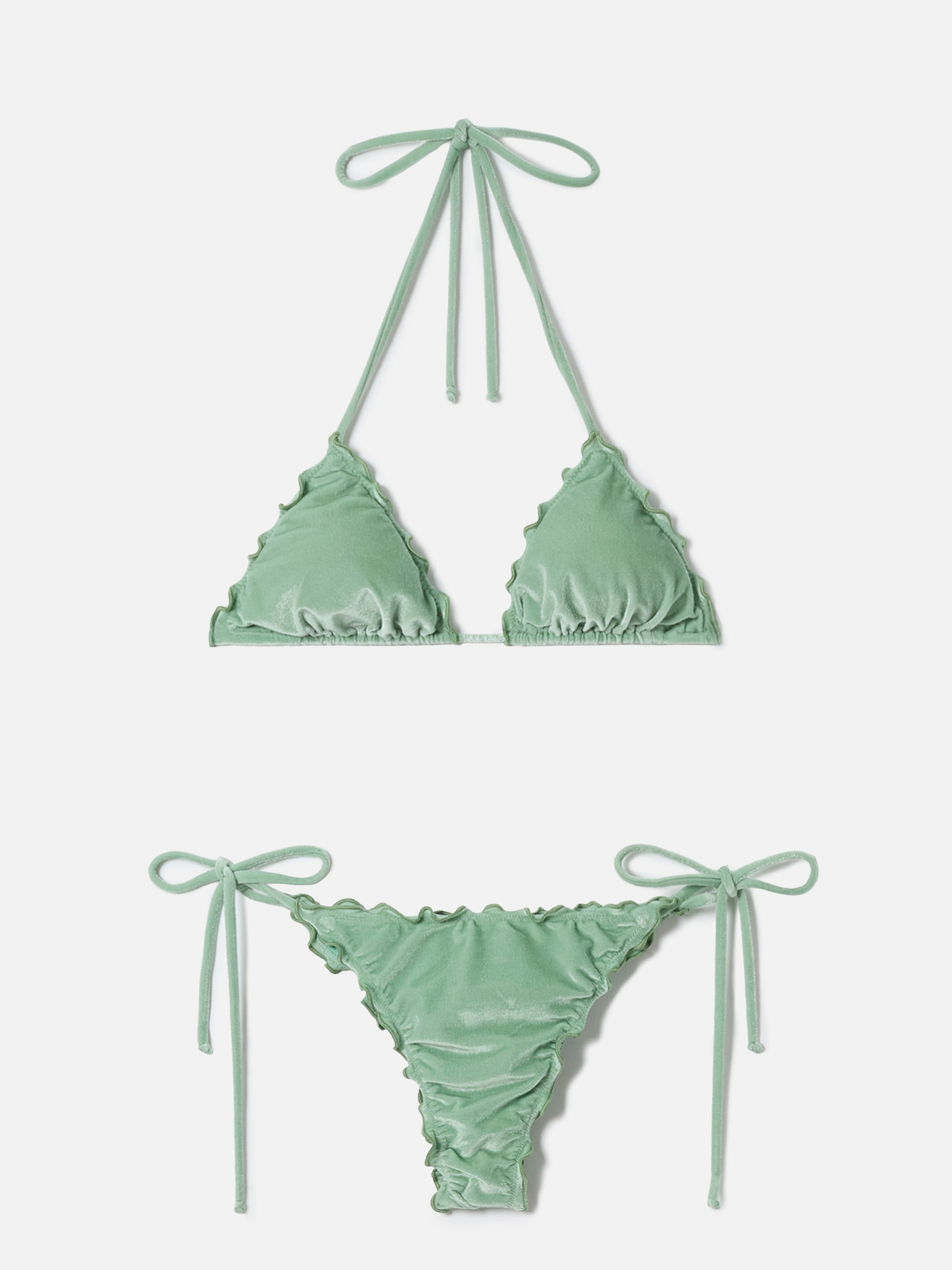 Bikini Sagittarius Miami in velluto argento e verde salvia