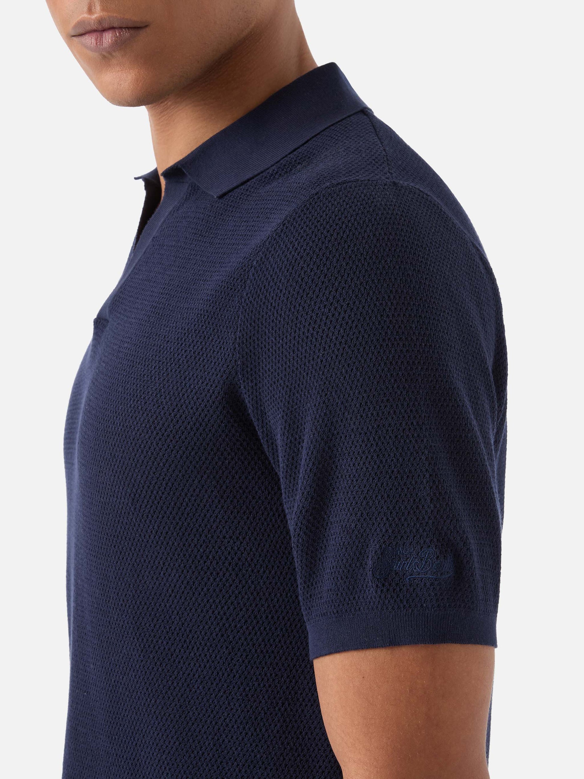 Polo Sloan Mesh in cotone pregiato high twist tinta unita blu