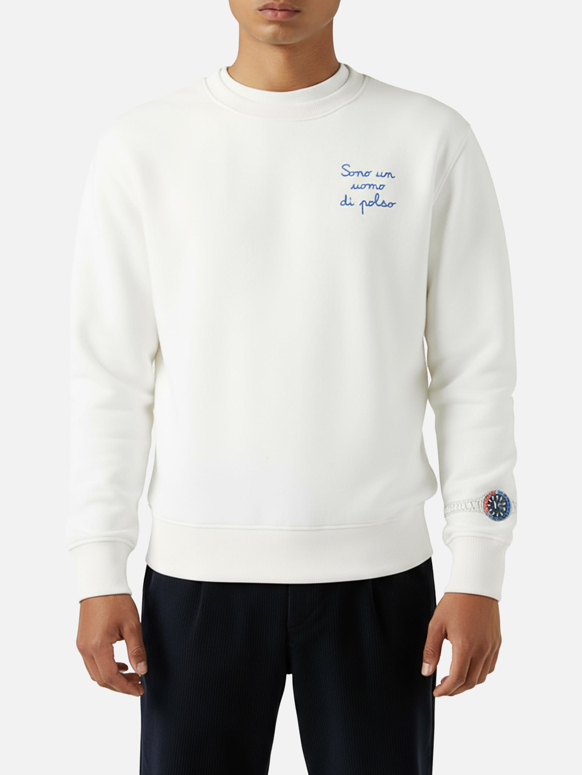 Felpa Soho in cotone bianco con stampa orologio sul polso e ricamo