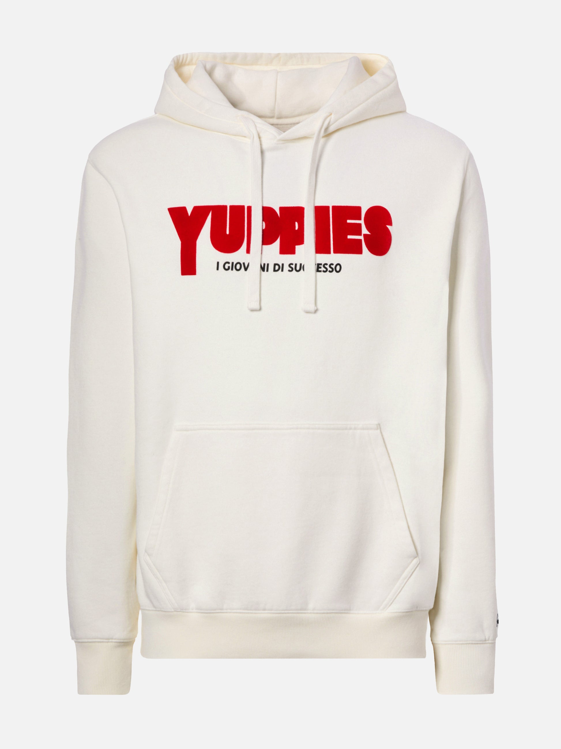 Felpa Tribeca in cotone bianco con cappuccio e stampa flock Yuppies | YUPPIES SPECIAL EDITION