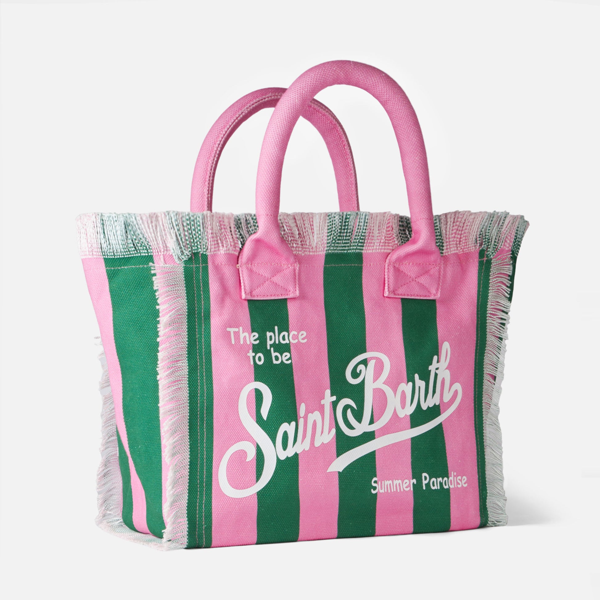 Borsa a spalla Vanity in canvas con righe rosa e verdi