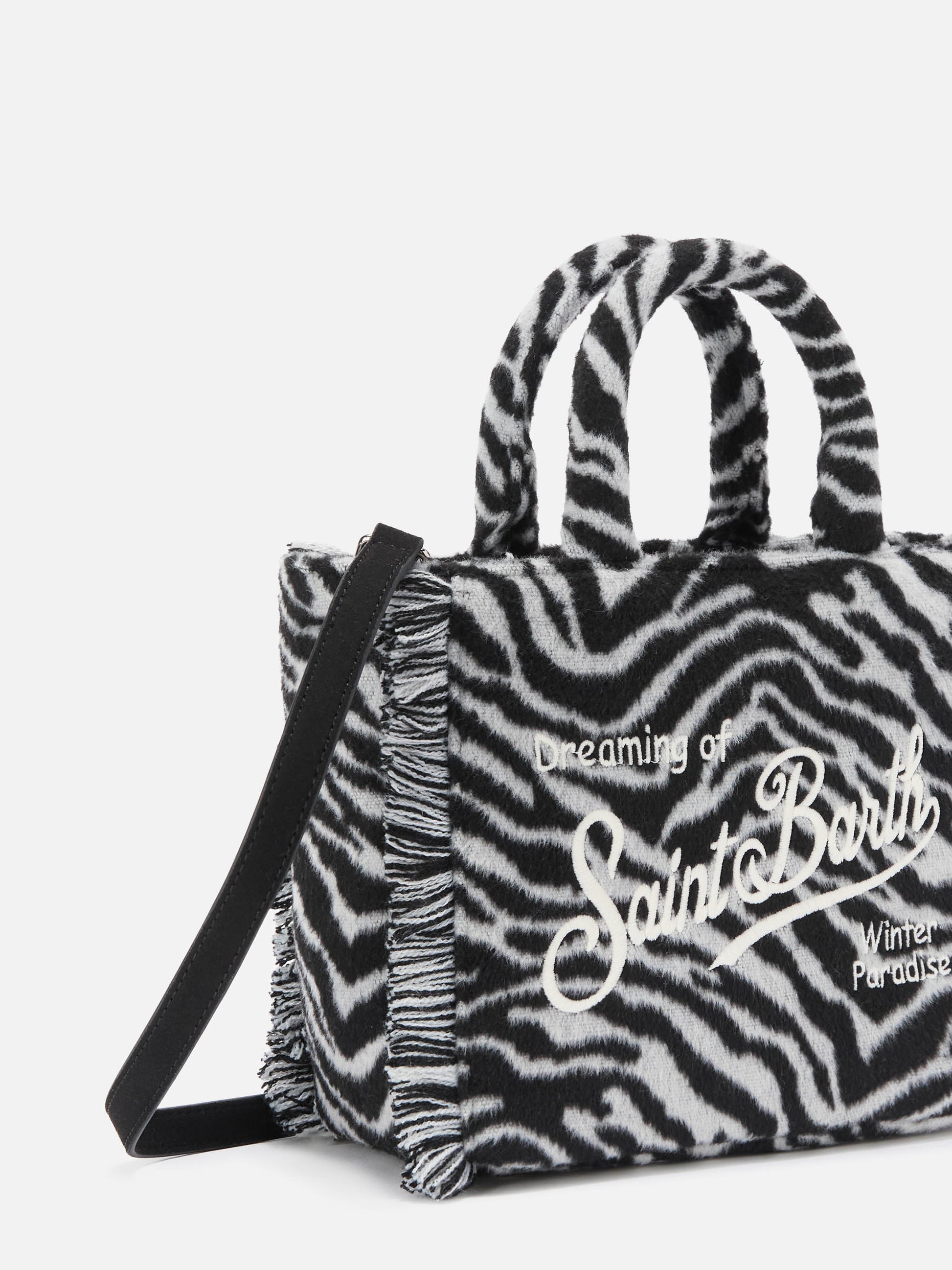 Borsa a mano Vanity Mini Felt in misto lana zebrata