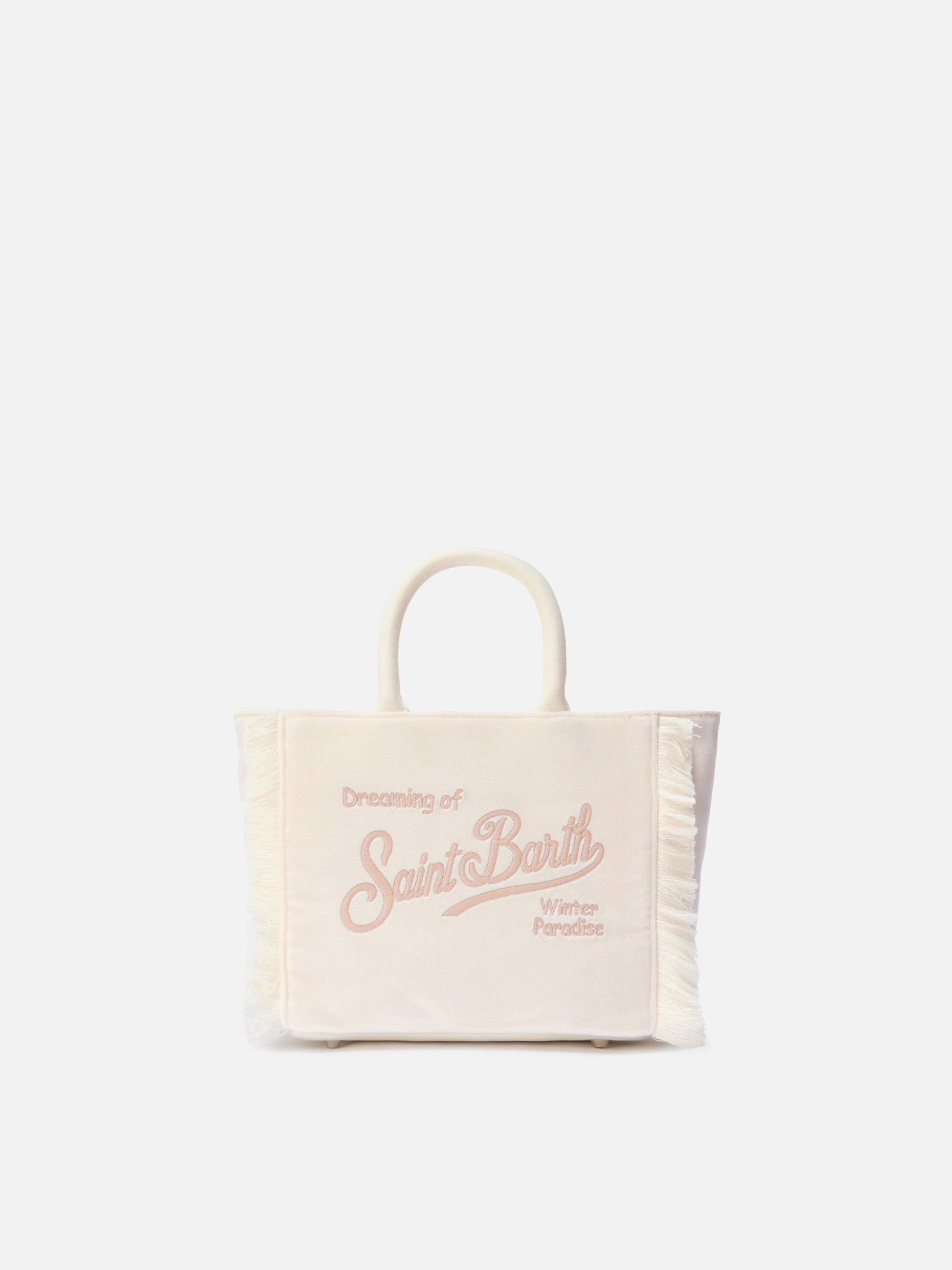Borsa a mano Vanity Mini Velvet in velluto e faux suede bianco