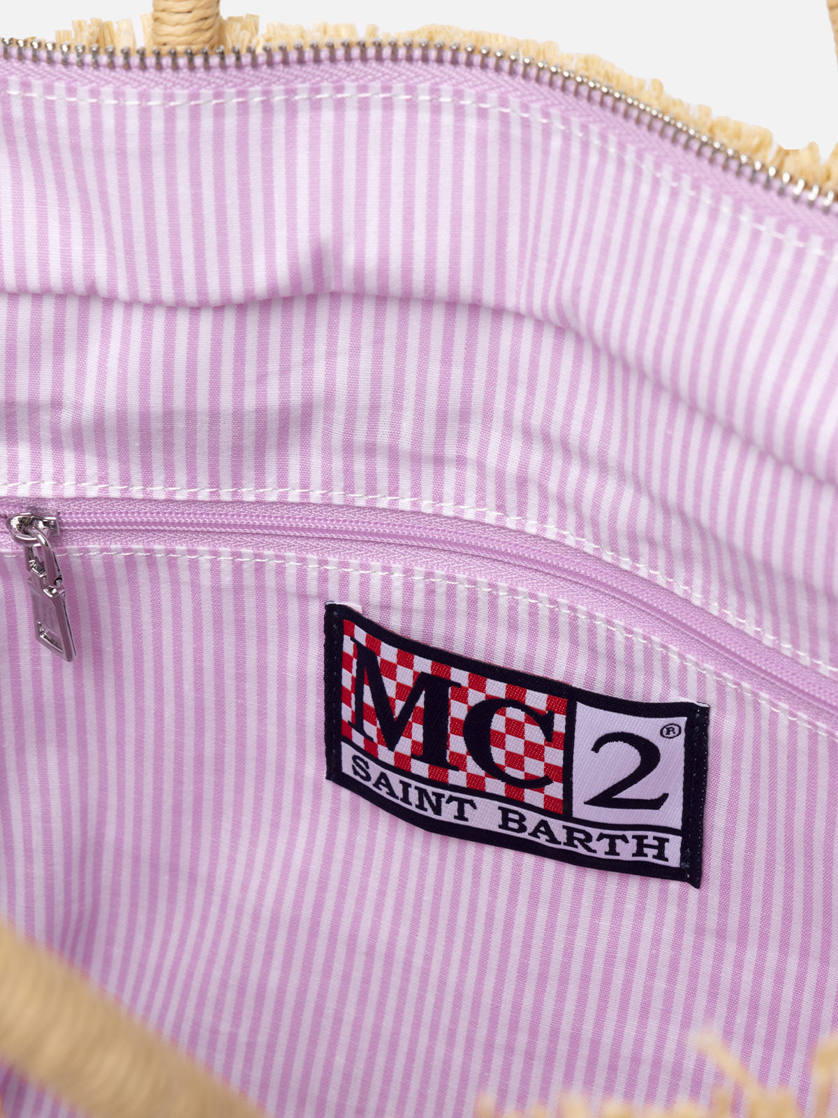 Ti presentiamo la borsa in paglia Colette in beige naturale: un accessorio chic che trasuda stile e raffinatezza senza sforzo. Realizzata in paglia sintetica di alta qualità, questa borsa offre il fascino delle fibre naturali senza compromettere la durata. La tonalità beige naturale aggiunge un tocco di sobria eleganza, rendendolo una scelta versatile per varie occasioni. La borsa in paglia Colette è dotata di una comoda tracolla, che ti offre molteplici opzioni di trasporto e garantisce comfort in movimento. Ciò che distingue questa borsa è il logo meticolosamente ricamato, che aggiunge un tocco distintivo e personalizzato. L'abbellimento del logo non solo mostra l'attenzione ai dettagli ma comunica anche sottilmente l'identità del marchio. Migliora il tuo outfit con il fascino senza tempo della borsa in paglia Colette beige naturale, dove lo stile incontra la funzionalità in un perfetto mix di forma e moda. Borsa Colette in paglia Stampa a righe verde acqua e beige naturale Ricamo esclusivo logo Saint Barth fucsia Decorazione con perline di legno multicolori Chiusura con cerniera Tracolla staccabile Dimensioni: 26 x 23 x 15 cm
