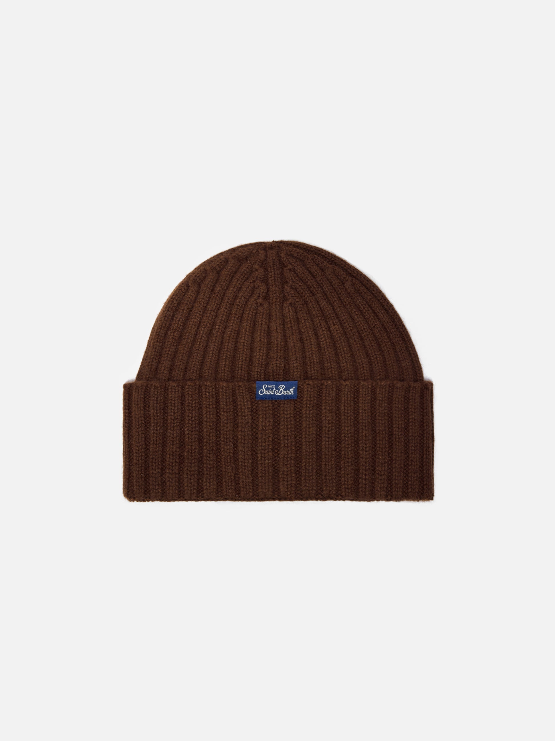 Berretto Wengen in misto cashmere marrone con ricamo lurex Ski Queen