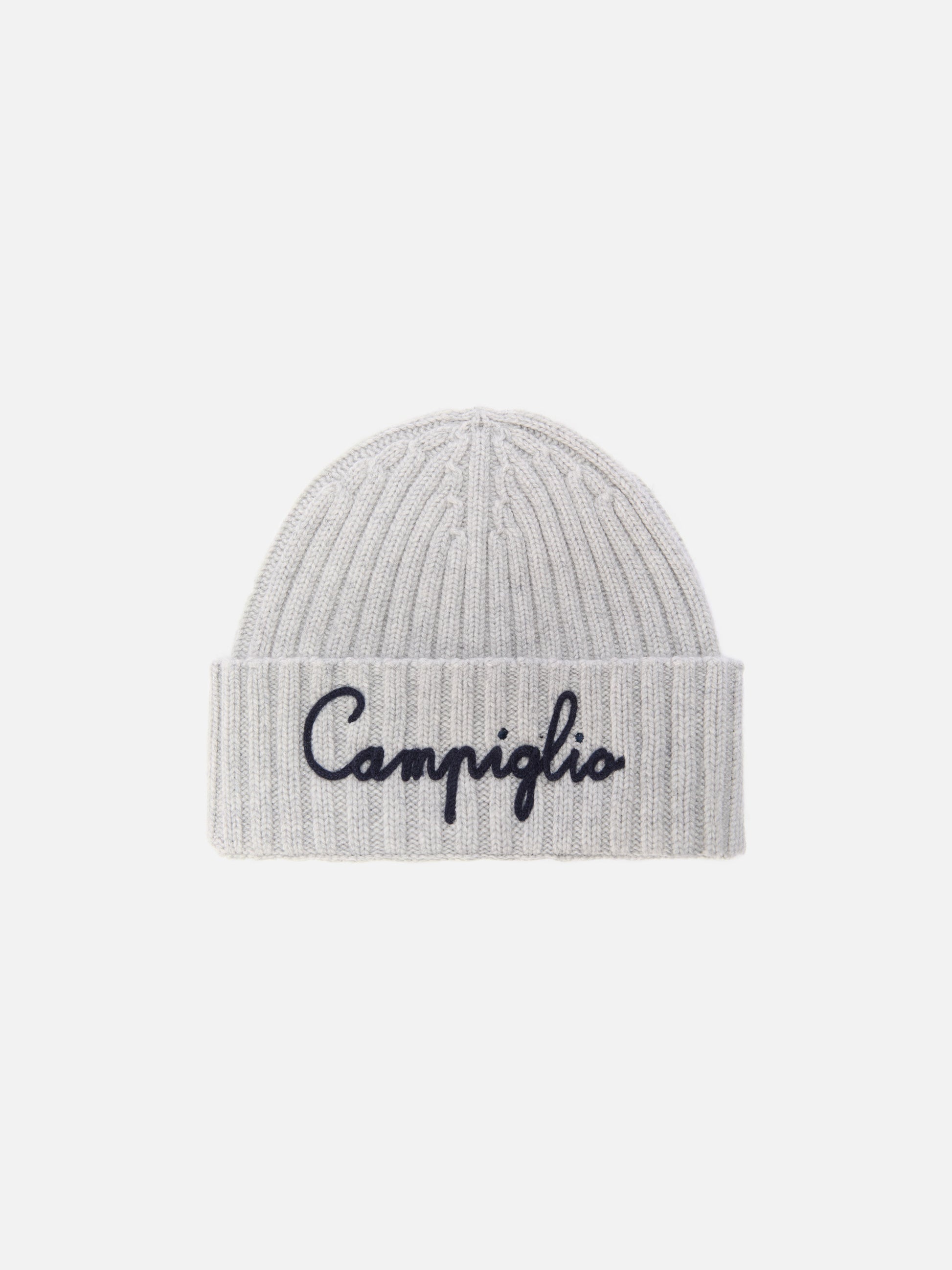 Berretto Wengen in misto cashmere grigio con ricamo Campiglio