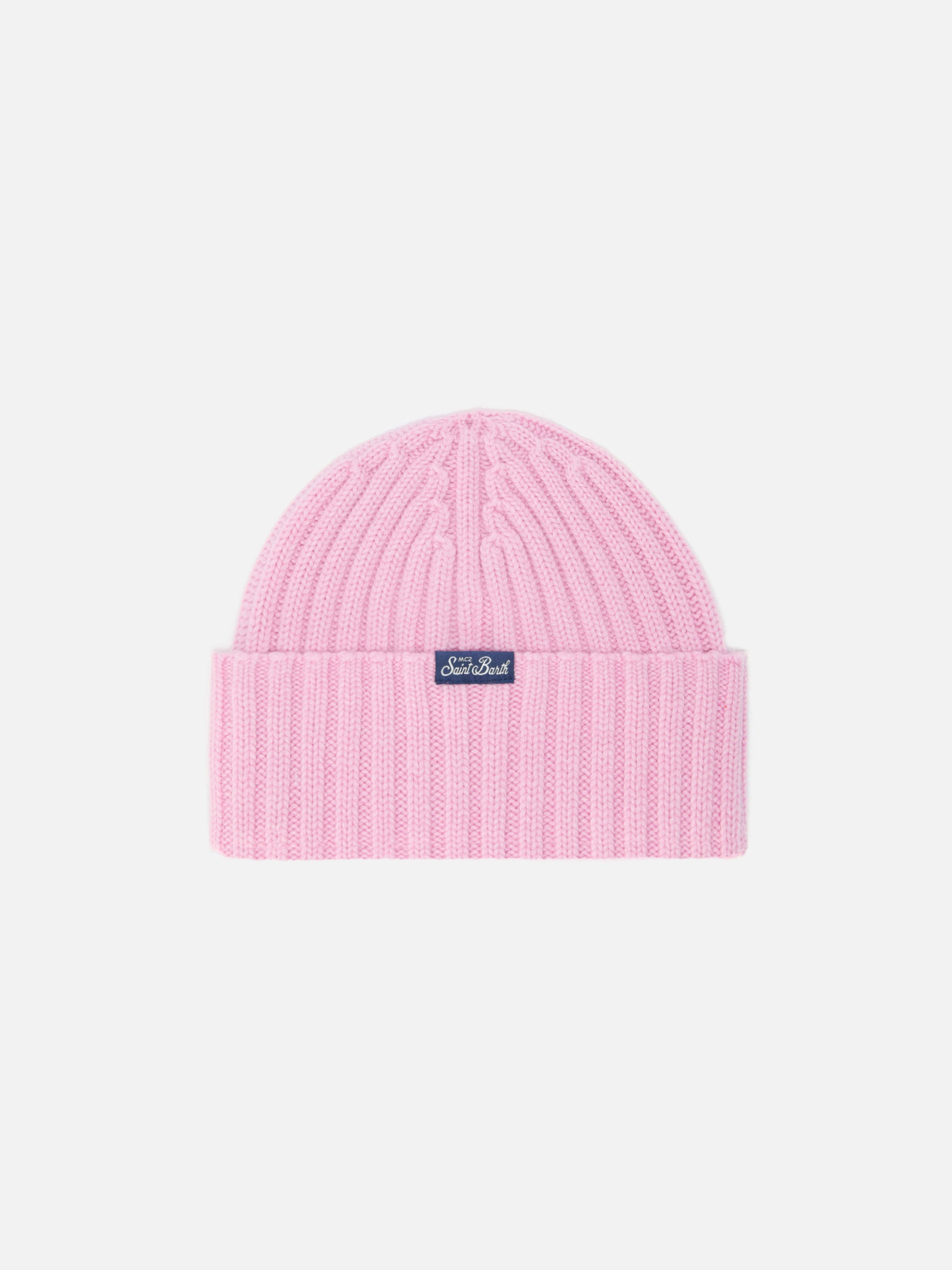 Berretto Wengen in misto cashmere rosa con ricamo Viziata