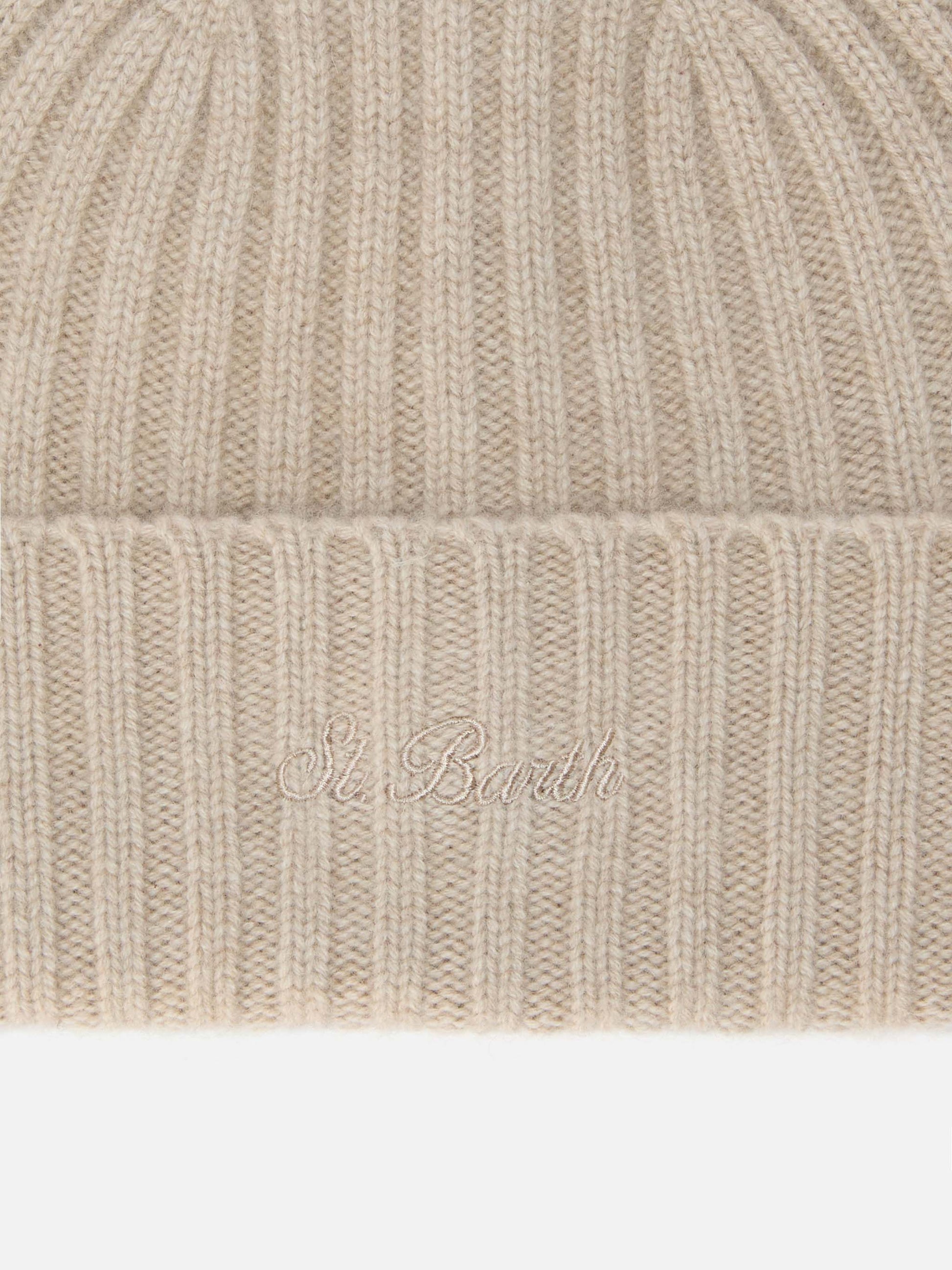 Berretto Wengen in cashmere kaki con Ricamo St. Barth sul risvolto