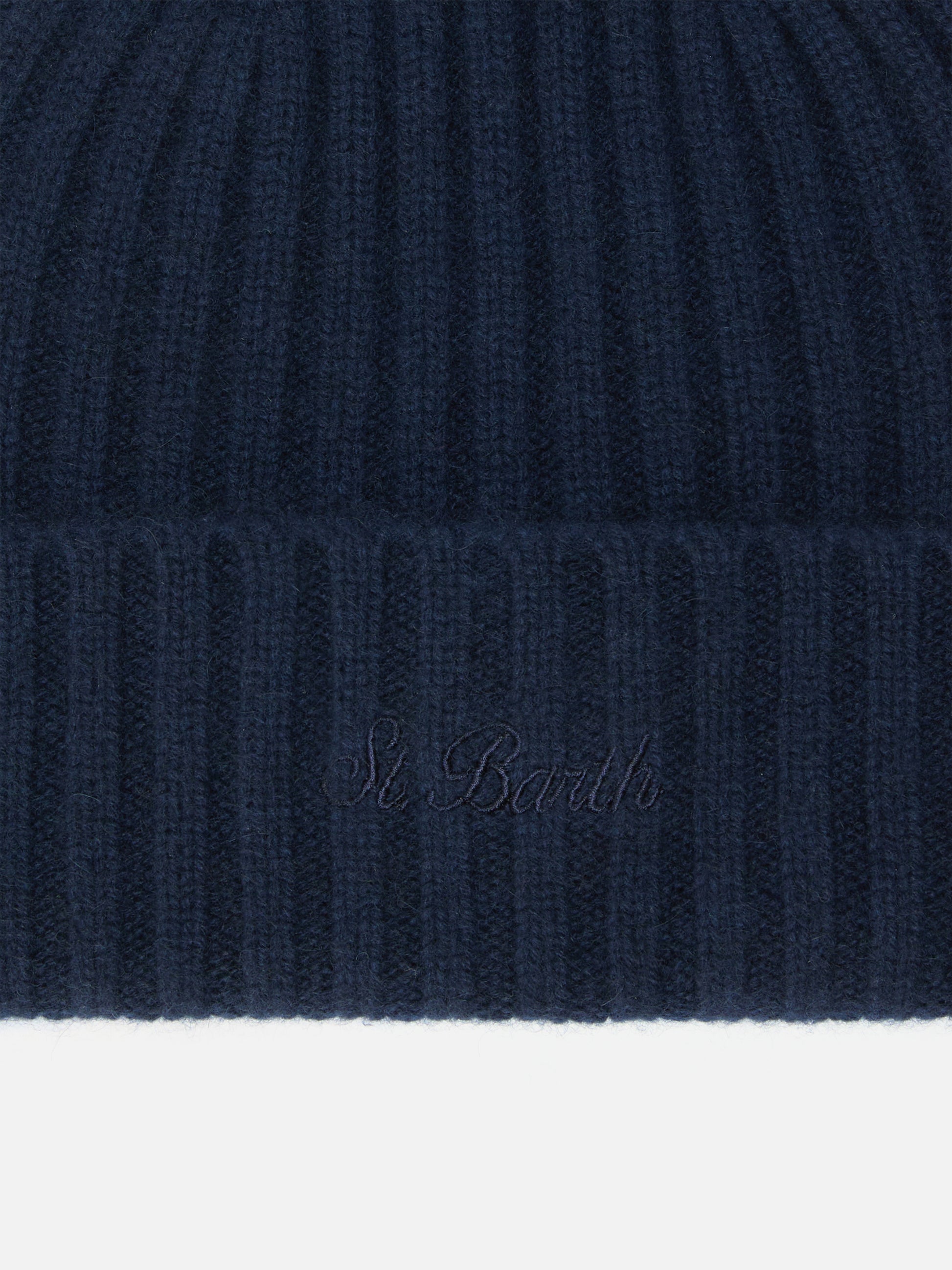 Berretto Wengen in cashmere blu notte con Ricamo St. Barth sul risvolto