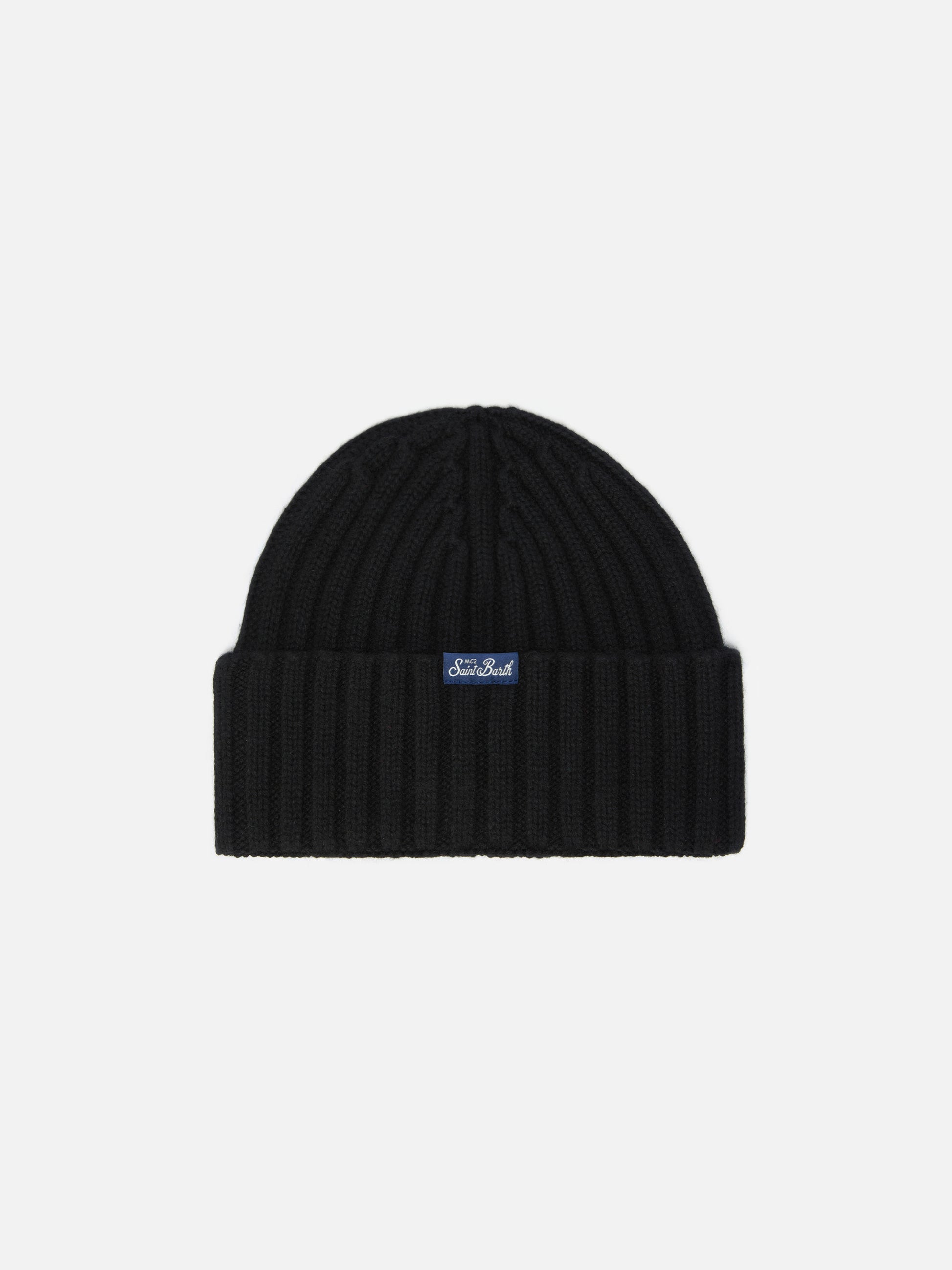 Berretto Wengen Jr in misto cashmere nero con ricamo Piccola Peste