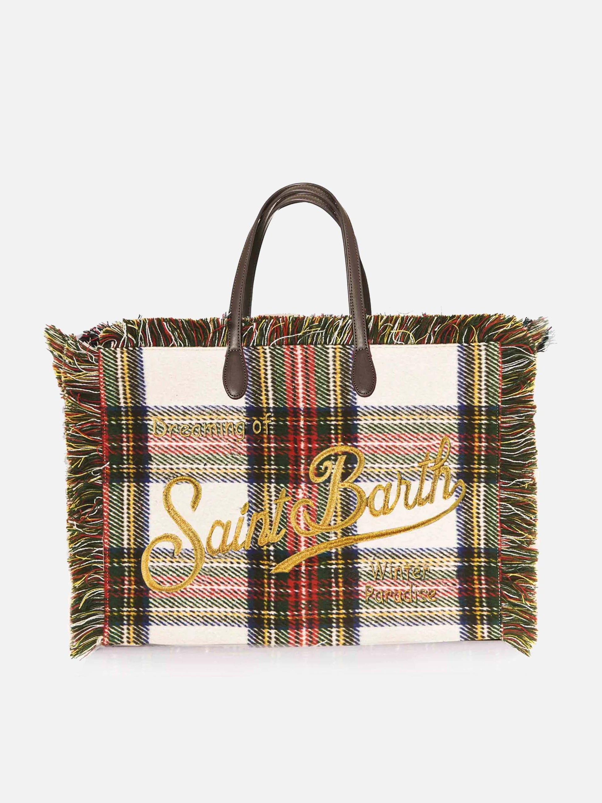 Borsa da donna in tartan bianco