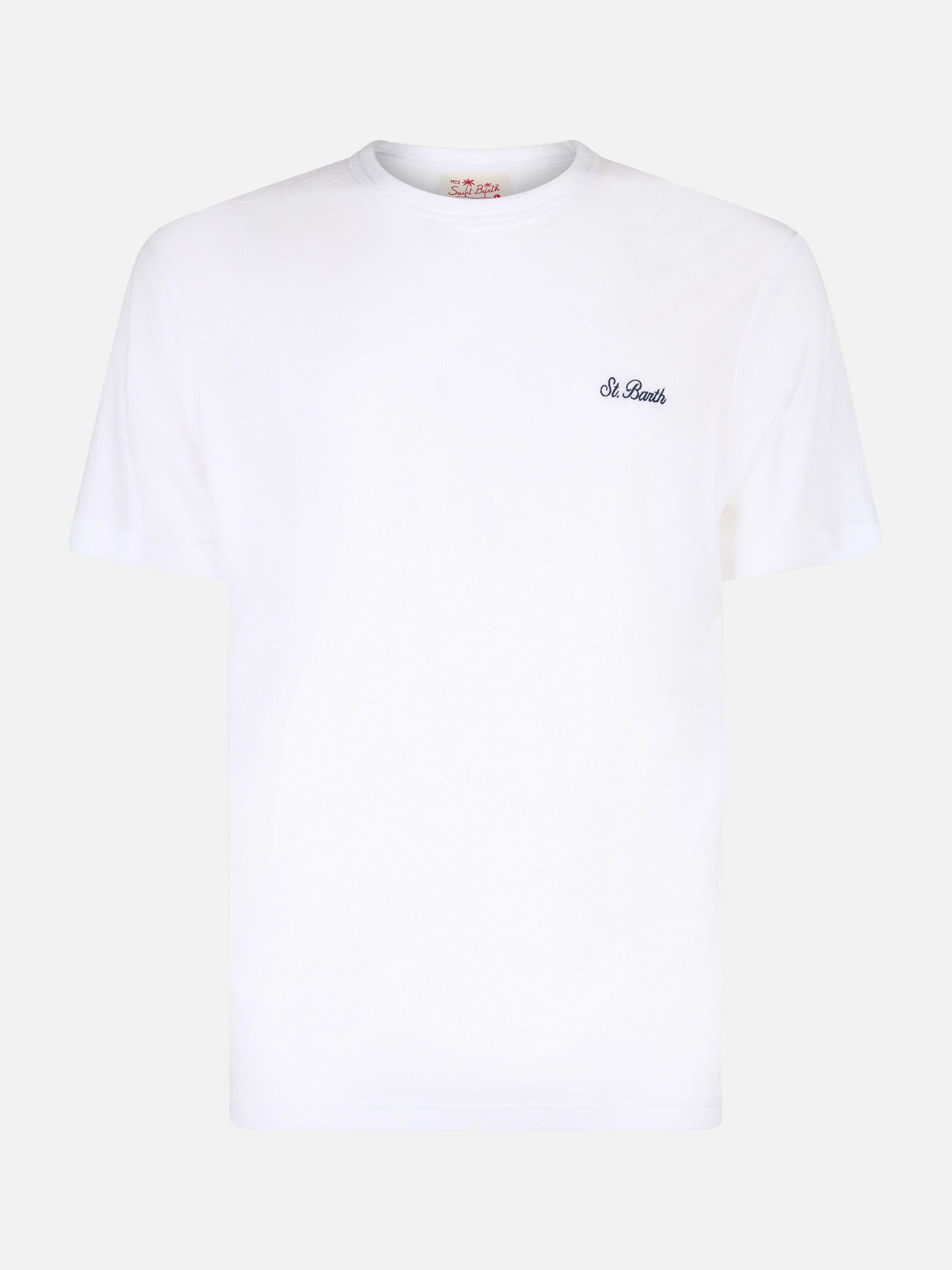 Tshirt in spugna bianca Gary con ricamo St. Barth