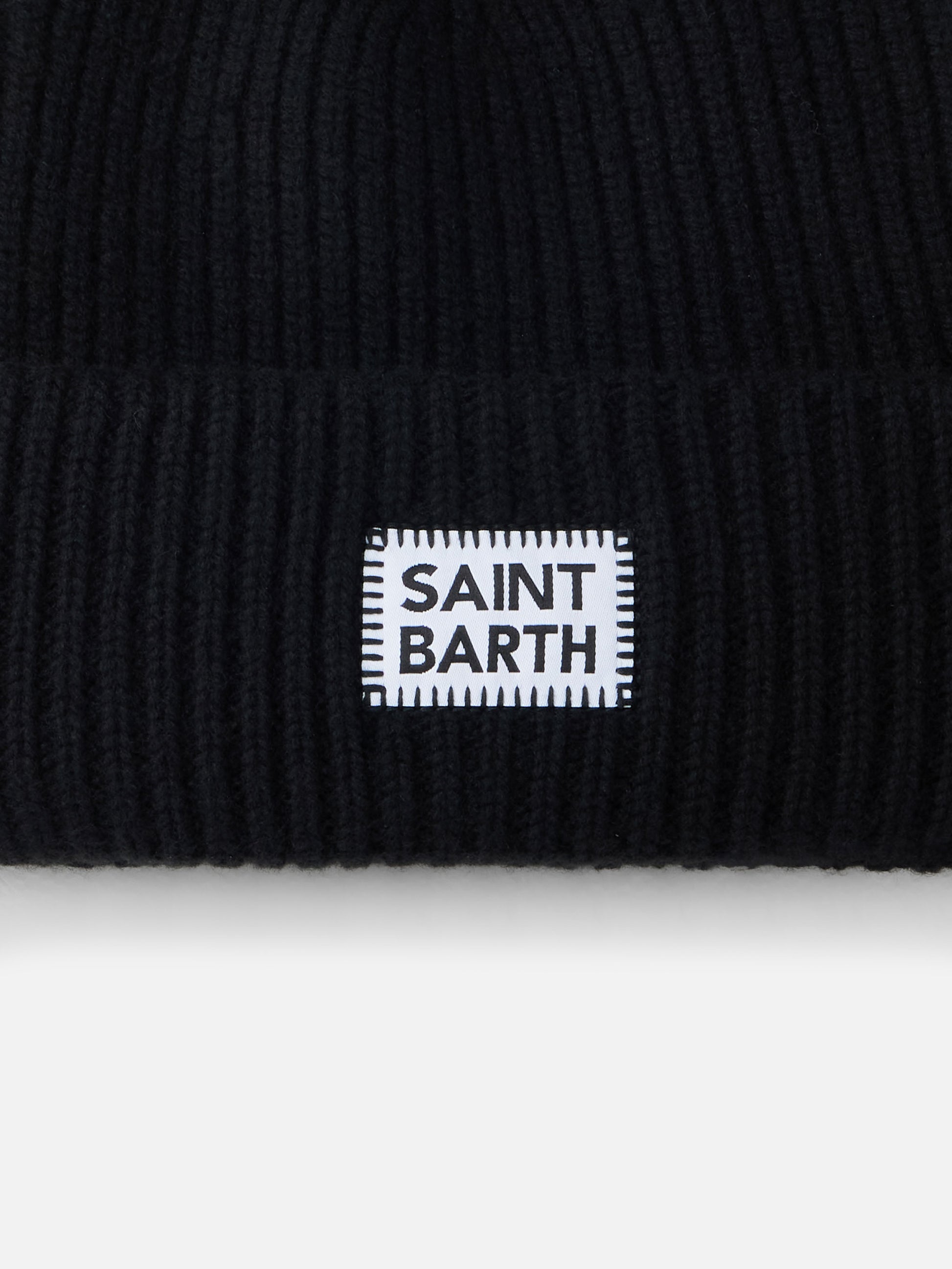 Berretto da donna Berry a coste nero con toppa St. Barth