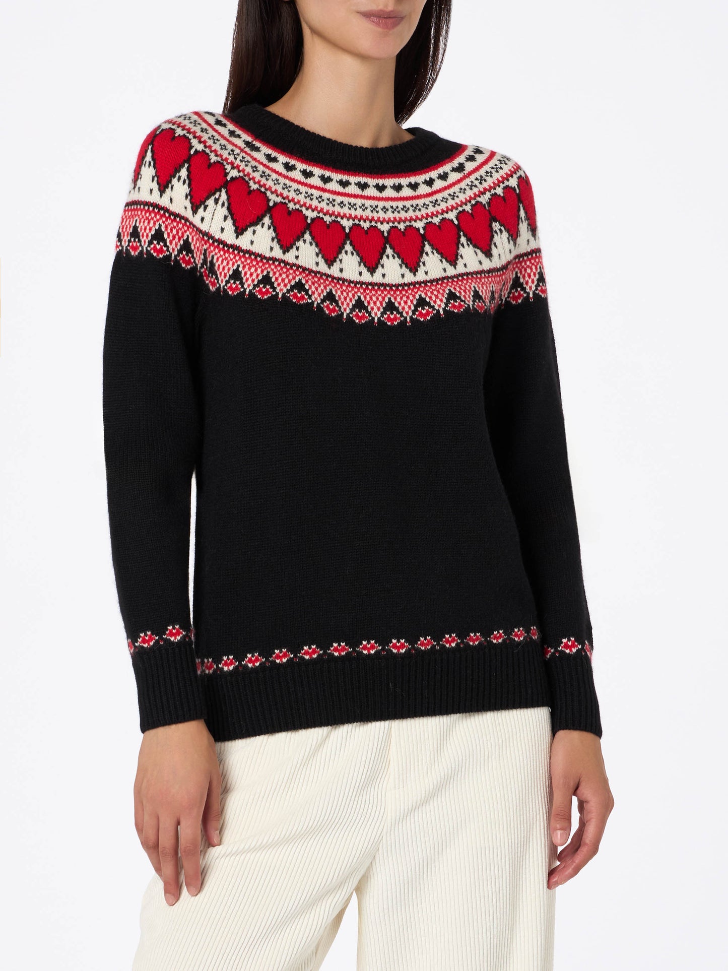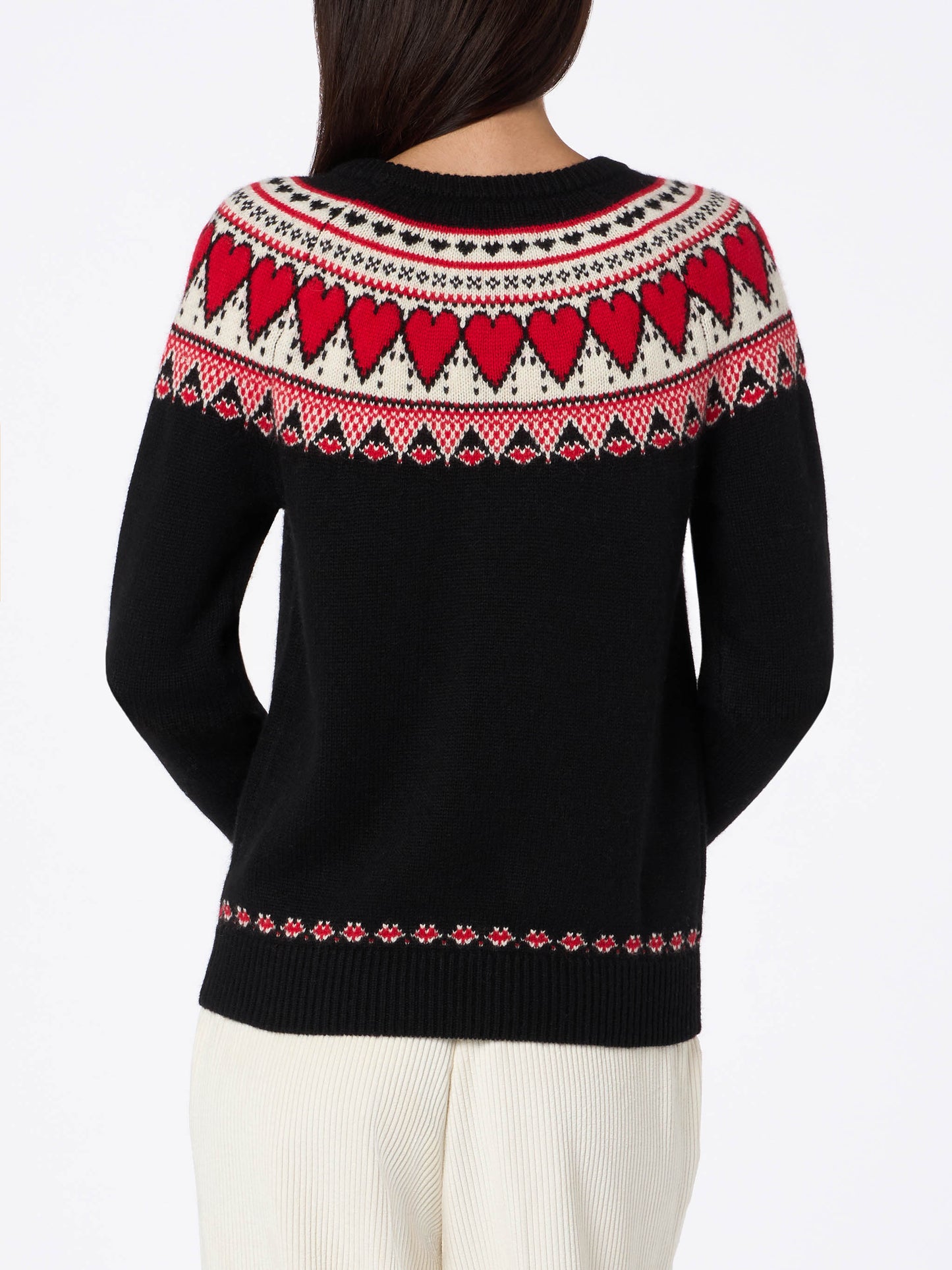 Maglione da donna nero New Queen con stampa cuori Fair Isle