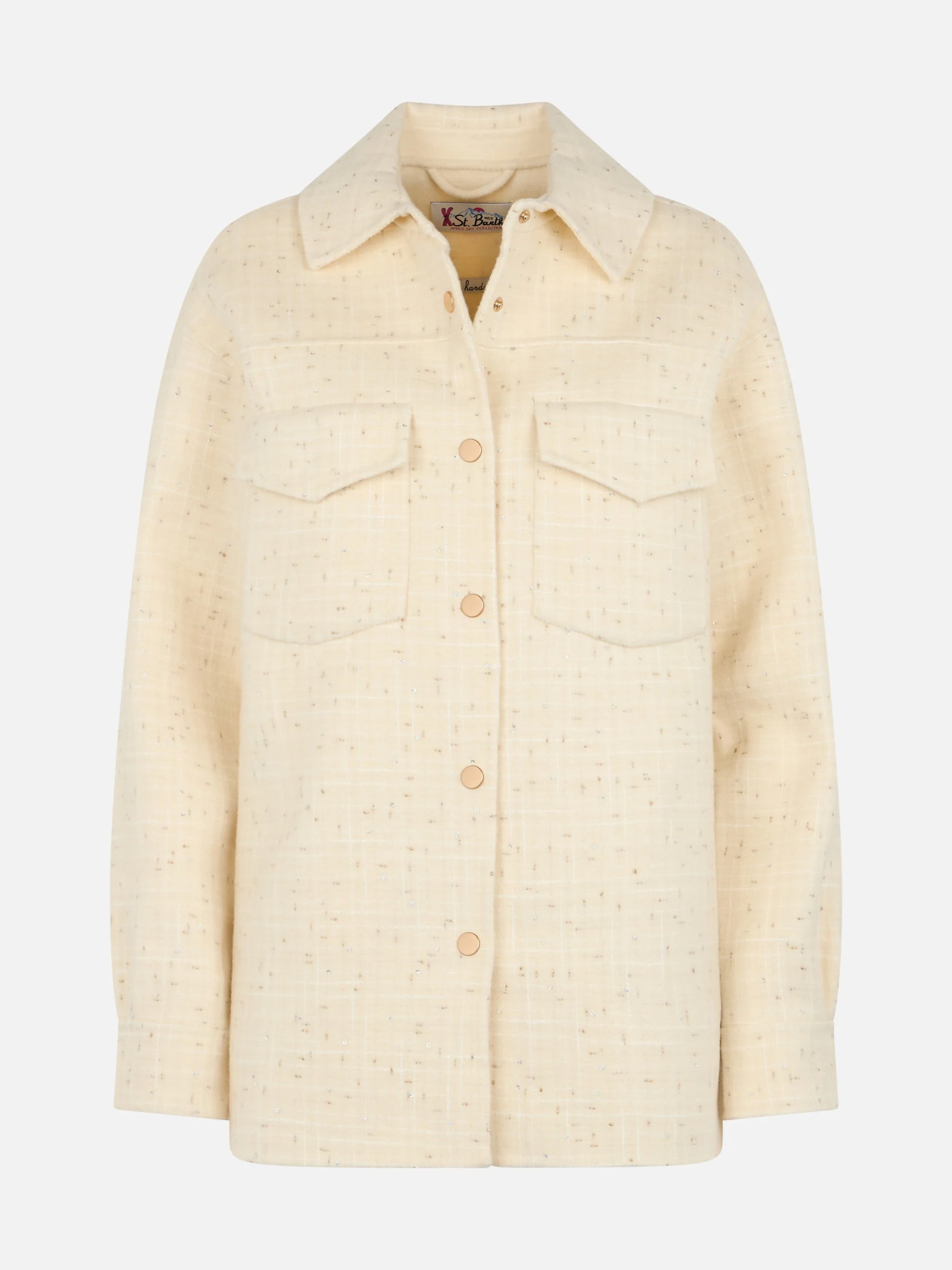 Giacca da donna in tweed di lana bianca Chantel con paillettes