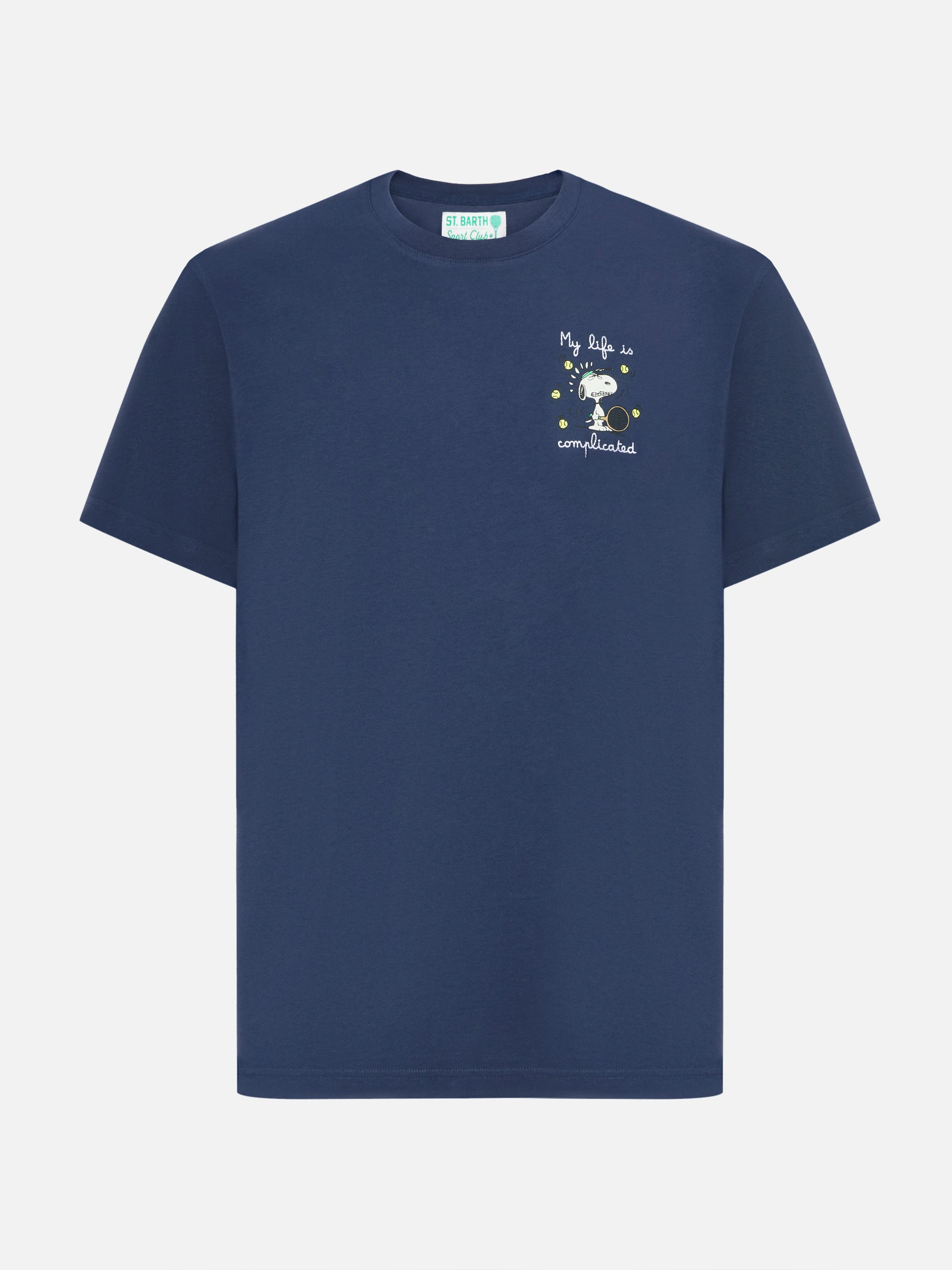Arnott cotton T-shirt in blue with Snoopy My life is complicated embroidery | PEANUTS SPECIAL EDITION