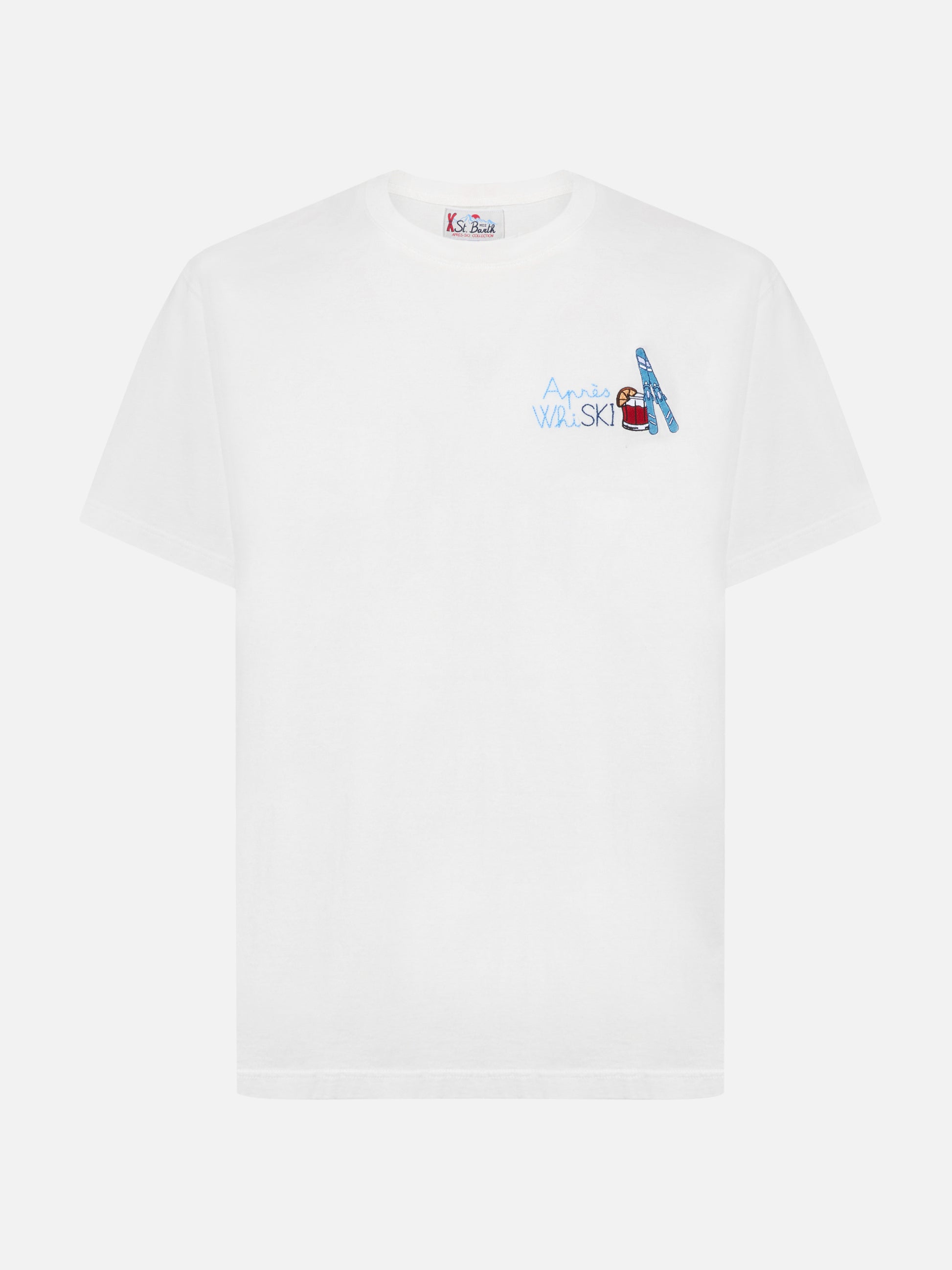 Arnott Warm winter cotton T-shirt in white with Après Ski embroidery